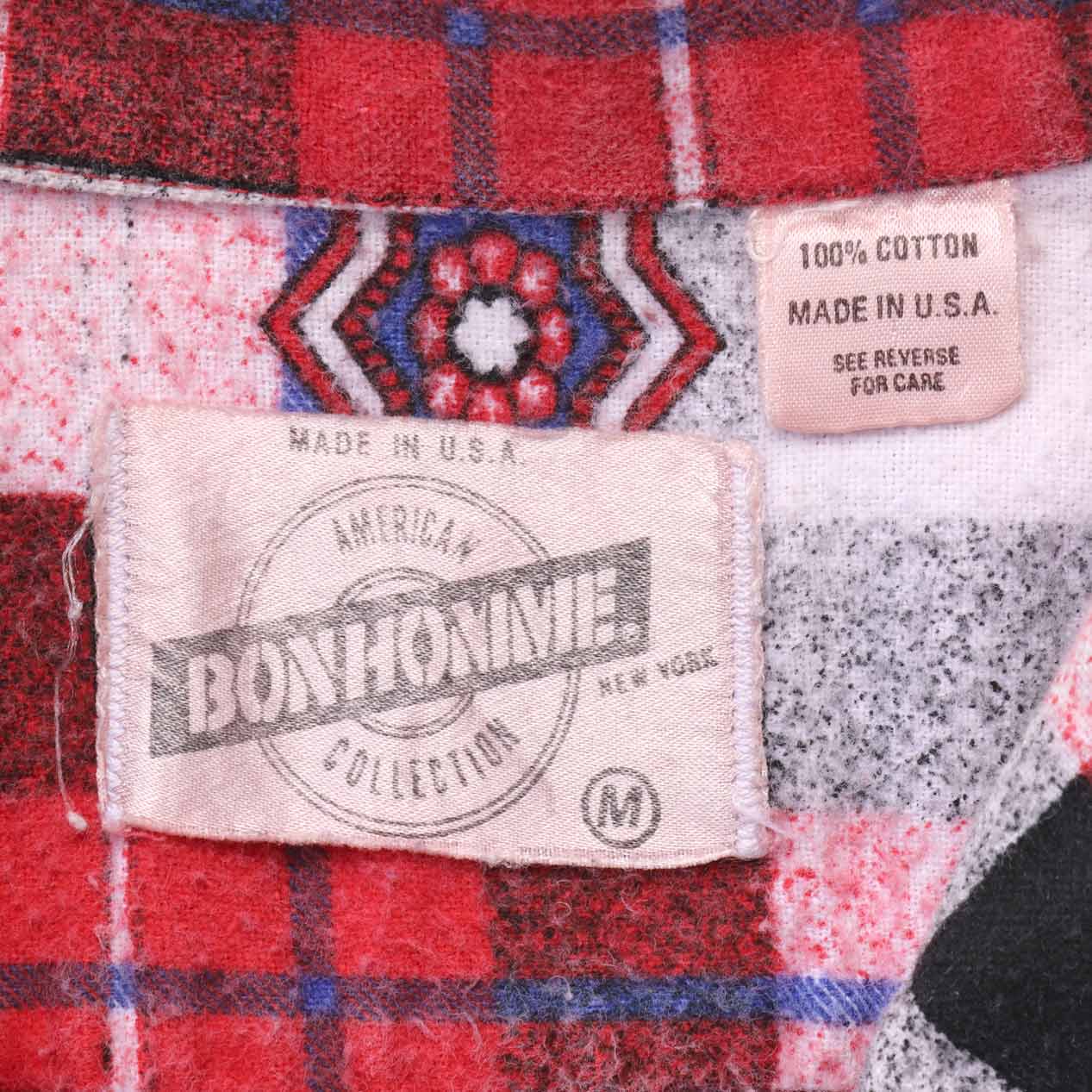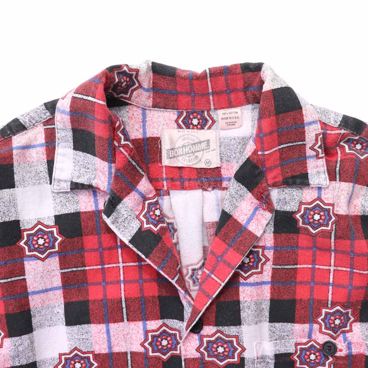 MODEL : BON HOMME オープンカラー プリントネルシャツ MANUFACTURE : Made In U.S.A. AGE : 80’s SIZE : M COLOR : レッド系 MATERIAL : コットン 100% COMMENT : 80年代、BON HOMMEのプリントネルシャツです。