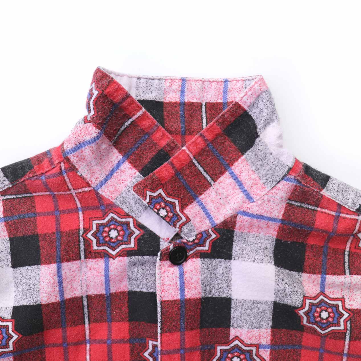 小紋柄が混ぜ込まれたタータンチェックにオープンカラーがグランジムード全開です。