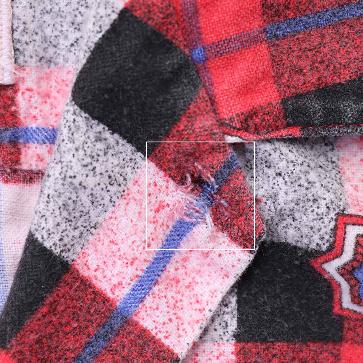 ・フロント : トップボタンホールにホツレ