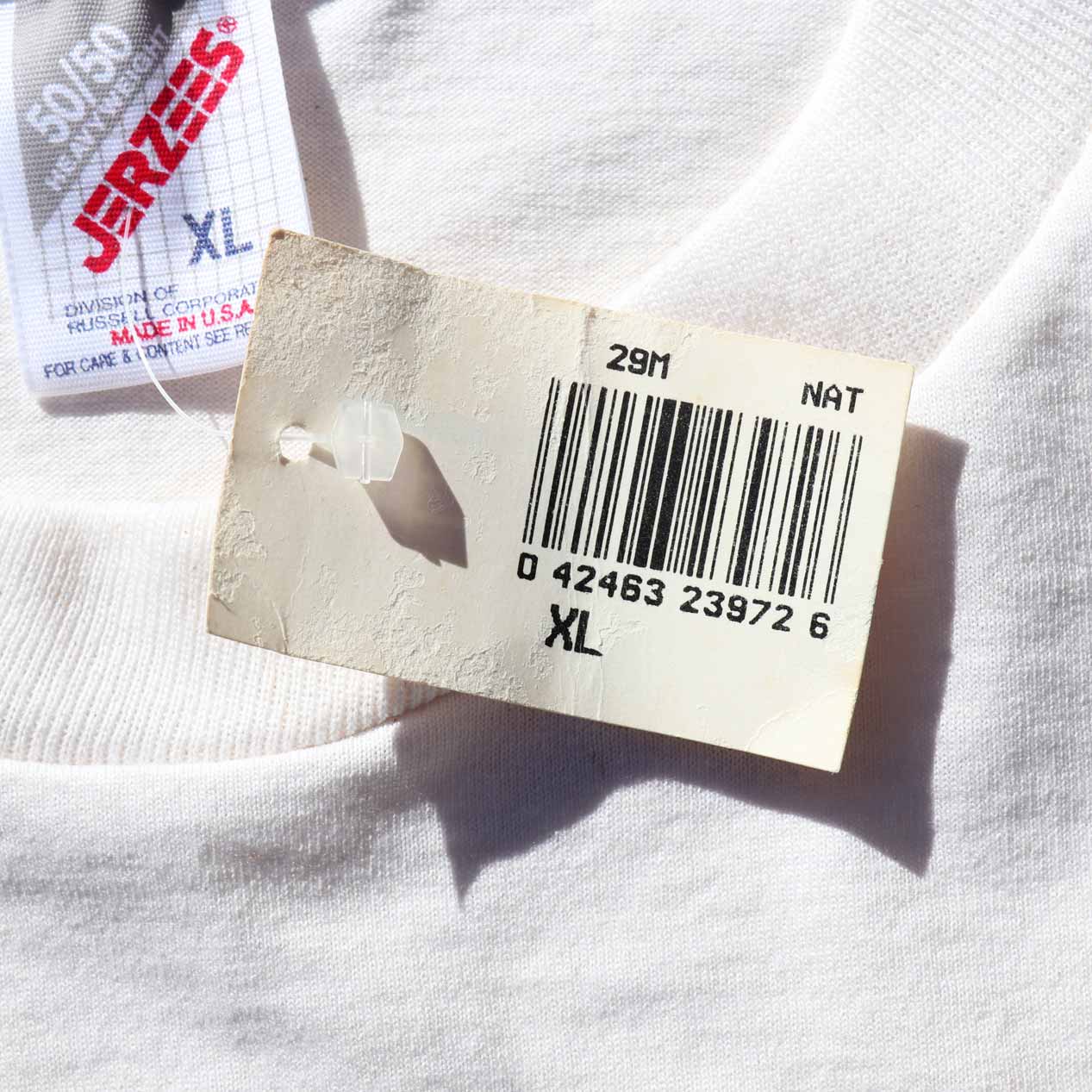 MODEL: JERZEES 50/50 Heavyweight Blank T-Shirt MADE IN: U.S.A. AGE: 90's SIZE: XL COLOR: ナチュラル MATERIAL: コットン 50% ポリエステル 50% COMMENT: 90年代 ラッセルアスレチック タグ付きデッドストック品 無地 ネップ混レギュラーウェイト天竺 袖・裾ともにダブルステッチ ●BLOGでもご紹介しておりますので是非ご覧ください● SIZE DETAILS Size Chart 身幅: 60.5cm 着丈: 80cm 肩幅: 53.5cm 袖丈: 23cm ※着用モデル(男性): 身長176cm / 体重54kg CONDITION Condition Chart Rank "SS" 保管汚れやパーツ不良の無いデッドストック ※その他詳細や詳しい画像をご覧になりたい場合はContact Formからお気軽にお問い合わせ下さい