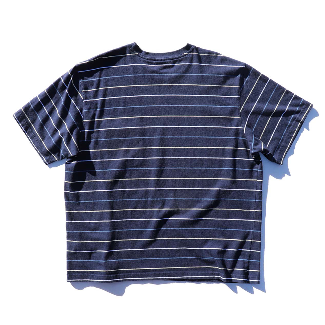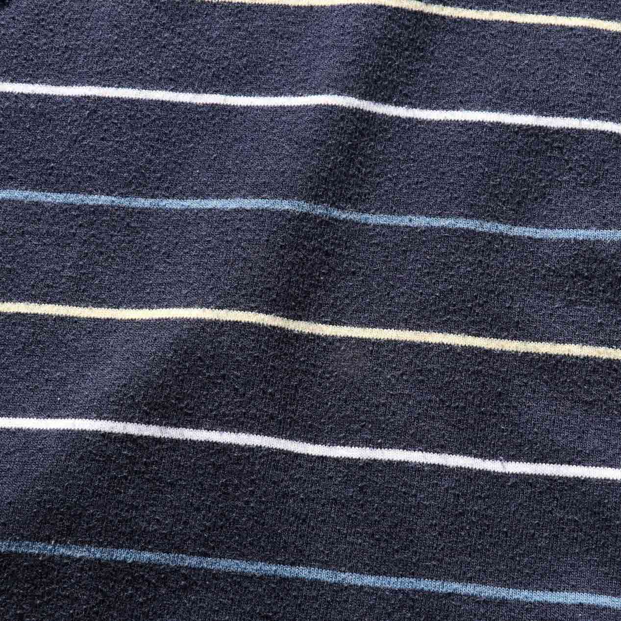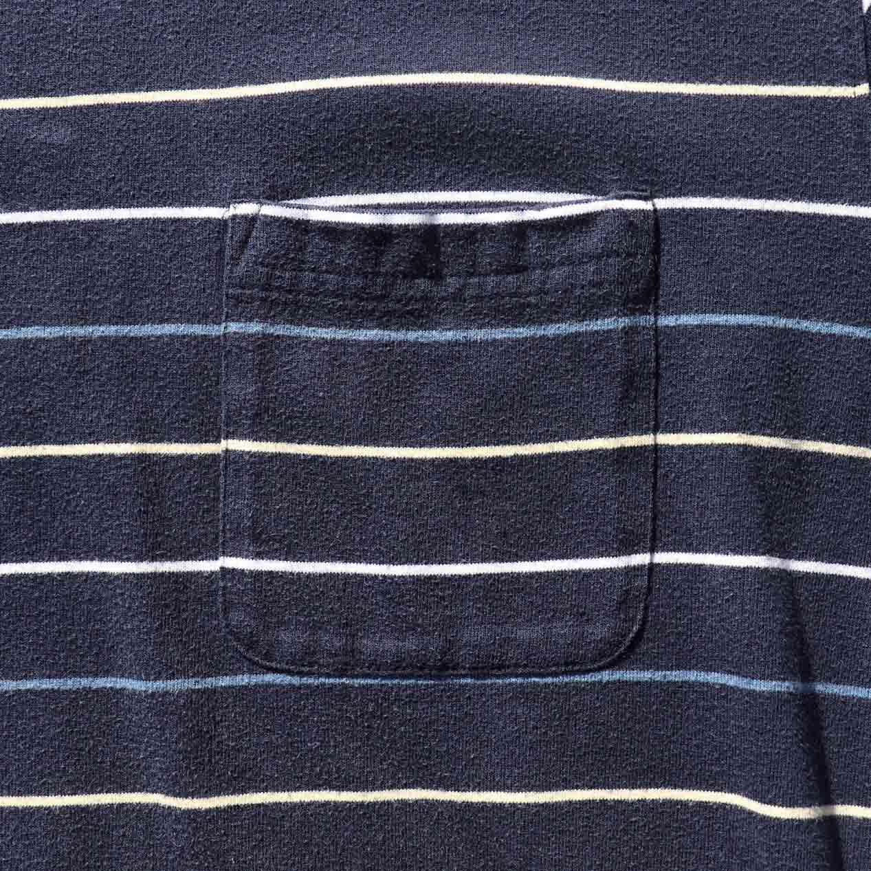 MODEL: PURITAN Striped Pocket T-Shirt MADE IN: India AGE: 90's SIZE: XL COLOR: ネイビー MATERIAL: コットン 60% ポリエステル 40% COMMENT: 90年代 ピューリタン 先染めボーダーパターン (ブルー/クリーム/ホワイト) ヘビーウェイト天竺 左胸にポケット 袖・裾ともにダブルステッチ ●BLOGでもご紹介しておりますので是非ご覧ください● SIZE DETAILS Size Chart 身幅: 62cm 着丈: 71.5cm 肩幅: 51cm 袖丈: 24cm ※着用モデル(男性): 身長176cm / 体重54kg CONDITION Condition Chart Rank "B" 着用感はあるが、汚れ・ダメージ・色褪せ等の無いまたは軽微な良好状態(下記詳細) ・全体: 着用感 ※その他詳細や詳しい画像をご覧になりたい場合はContact Formからお気軽にお問い合わせ下さい。