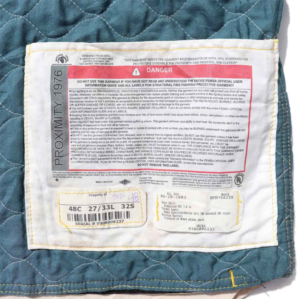 00’s MORNING PRIDE Nomex Quilted Liner Jacket Made In U.S.A. [48C]