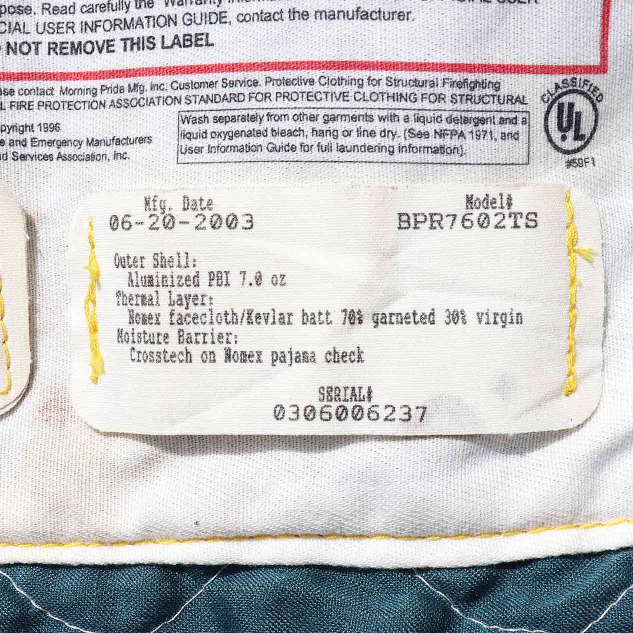 MODEL: MORNING PRIDE Nomex Quilted Liner Jacket