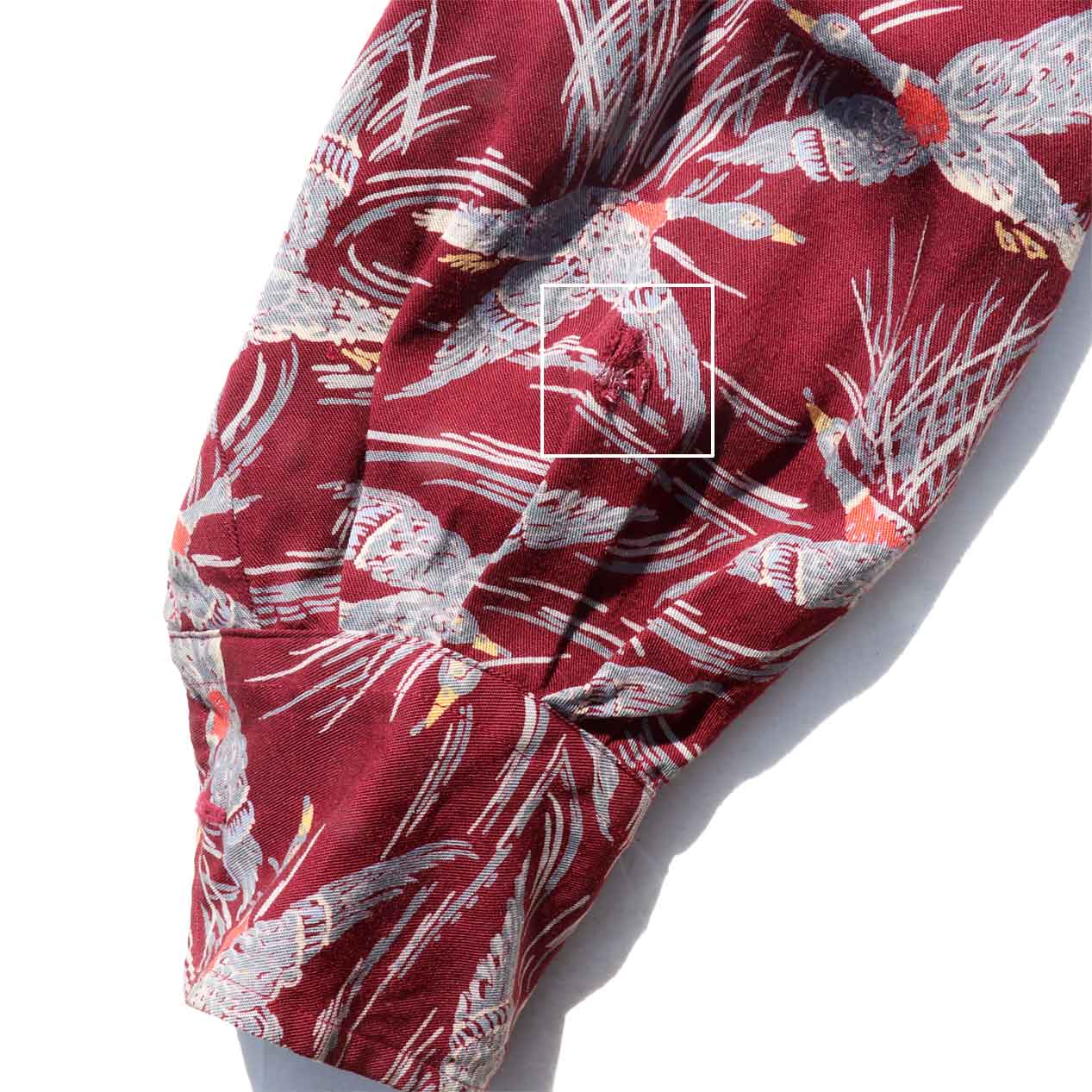 MODEL: POLO RALPH LAUREN Duck Patterned Rayon Shirt MADE IN: Malaysia AGE: 90's SIZE: 8 COLOR: バーガンディ MATERIAL: レーヨン 100% COMMENT: 90年代 ポロラルフローレン 全面鴨柄プリント オープンカラー 両胸にフラップポケット SIZE DETAILS Size Chart 身幅: 58cm 着丈: 74cm 肩幅: 47cm 袖丈: 58cm ※着用モデル(男性): 身長176cm / 体重54kg CONDITION Condition Chart Rank "C" 着用感があり、汚れ・ダメージ・色褪せが一部または全体にある状態(下記詳細) ・全体: 着用感 ・袖: 右袖先に穴 ※その他詳細や詳しい画像をご覧になりたい場合はContact Formからお気軽にお問い合わせ下さい。