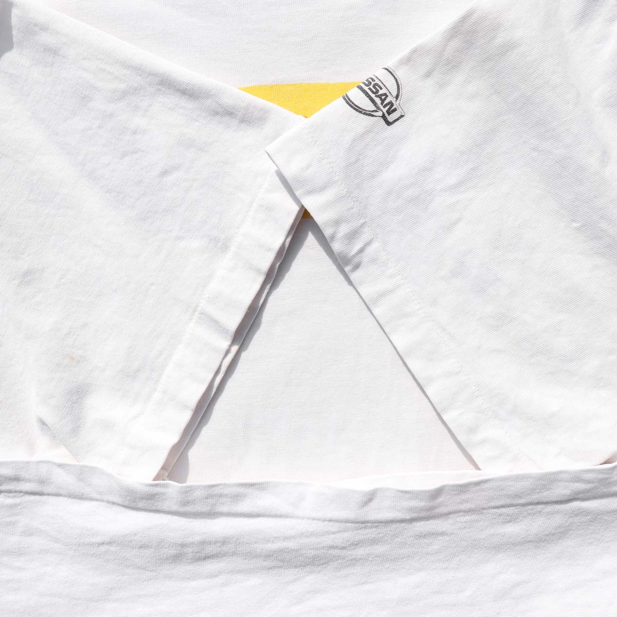 MODEL: NISSAN “LIFE IS A JOURNEY / ENJOY THE RIDE” T-Shirt MADE IN: --- AGE: 90's SIZE: --- (XL相当) COLOR: ホワイト MATERIAL: --- (おそらくコットン 100%) COMMENT: 90年代 日産 フロント、バック、左袖に水性ラバープリント 襟タグ欠損、ヘビーウェイト天竺 袖・裾ともにシングルステッチ SIZE DETAILS Size Chart 身幅: 59cm 着丈: 74cm 肩幅: 56.5cm 袖丈: 19cm ※着用モデル(男性): 身長176cm / 体重54kg CONDITION Condition Chart Rank "C" 着用感があり、汚れ・ダメージ・色褪せが一部または全体にある状態(下記詳細) ・全体: 着用感 ・フロント、袖: 汚れ ・バック: 左脇付近に小穴 ※その他詳細や詳しい画像をご覧になりたい場合はContact Formからお気軽にお問い合わせ下さい。