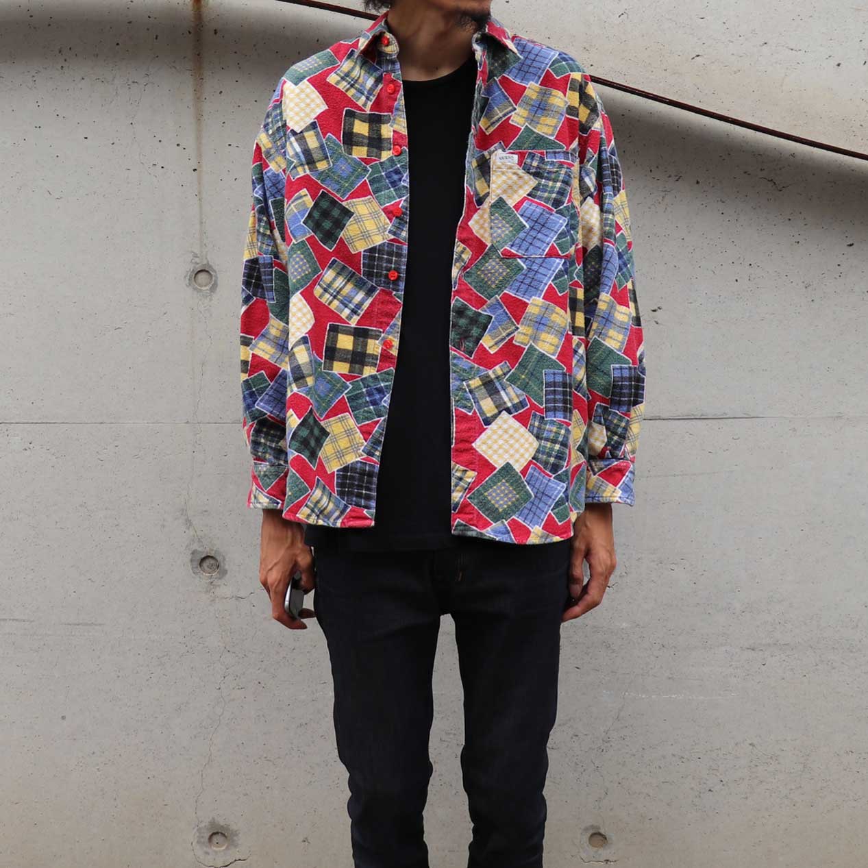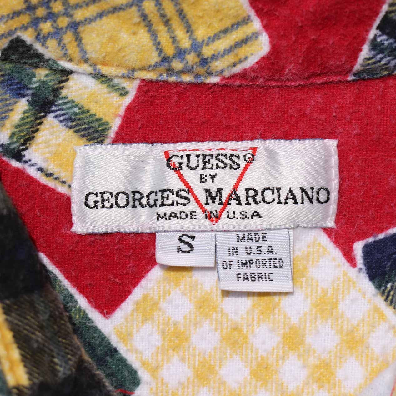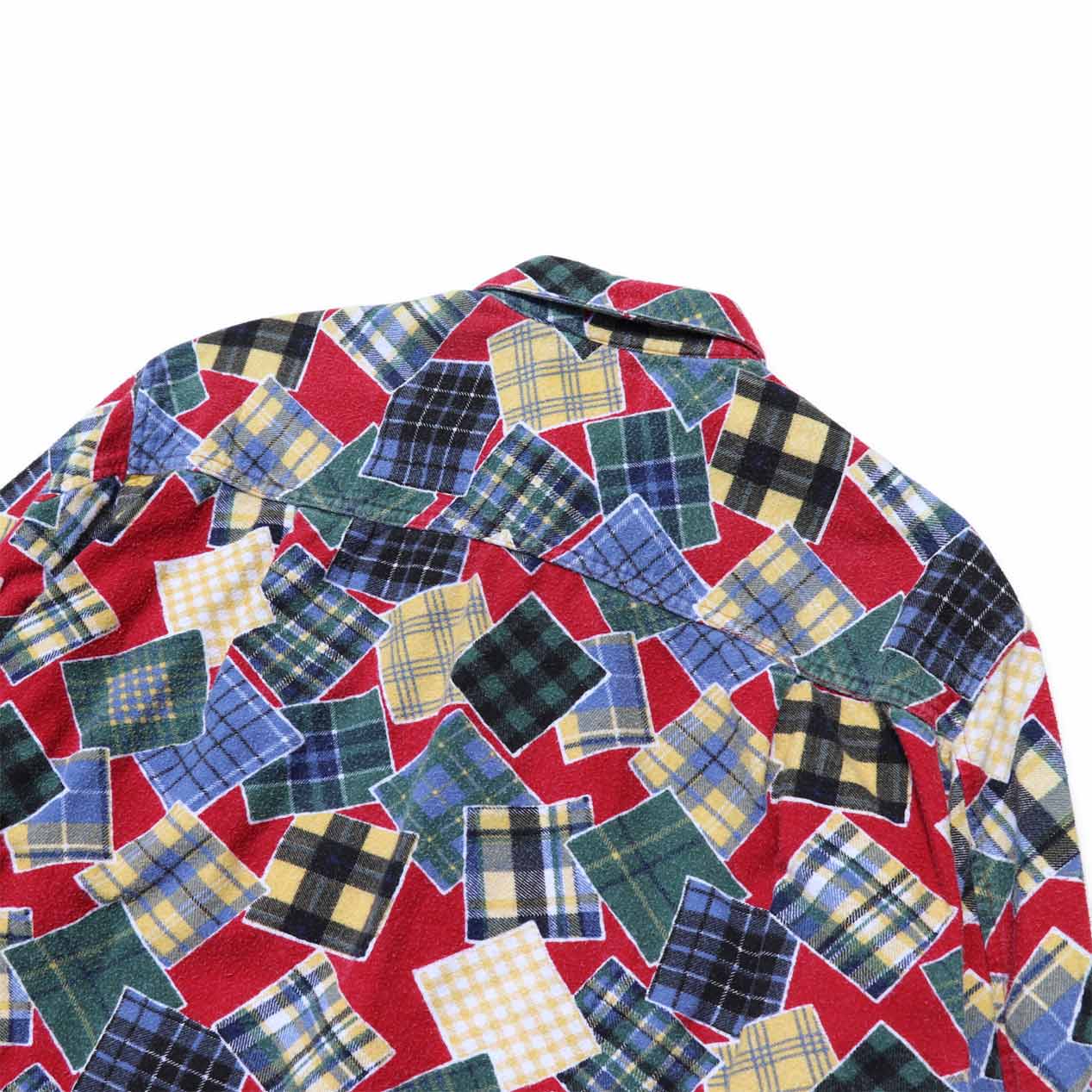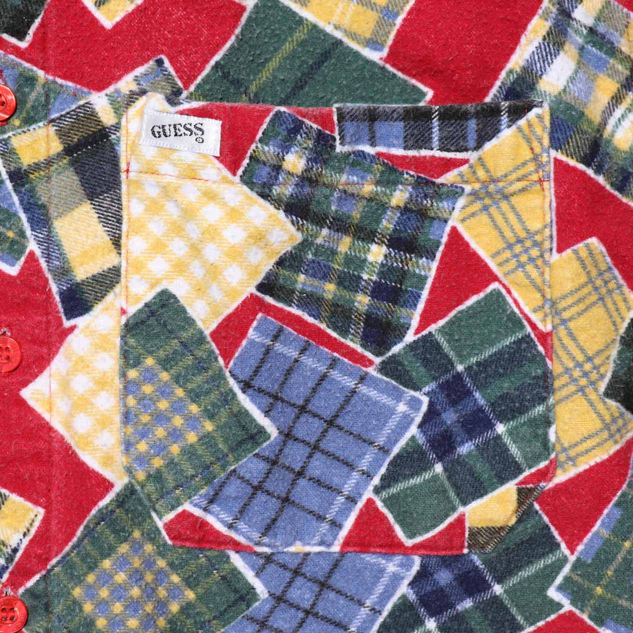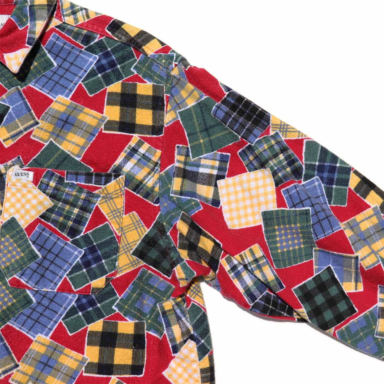 MODEL : GUESS パッチワーク柄プリント フランネルシャツ MANUFACTURE : Made In U.S.A. AGE : 90's SIZE : S COLOR : レッド系 MATERIAL : コットン 100% COMMENT : 90年代、GUESSのフランネルシャツです。
