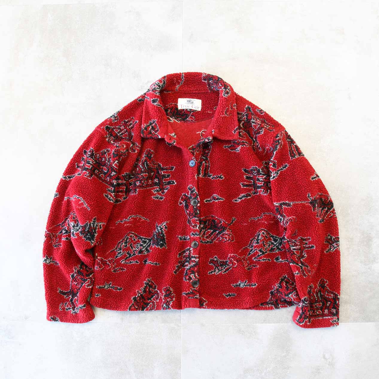 ・90’s TRUE GRIT Cowboy Patterned Fleece Shirt Made In U.S.A. [Women’s XL]