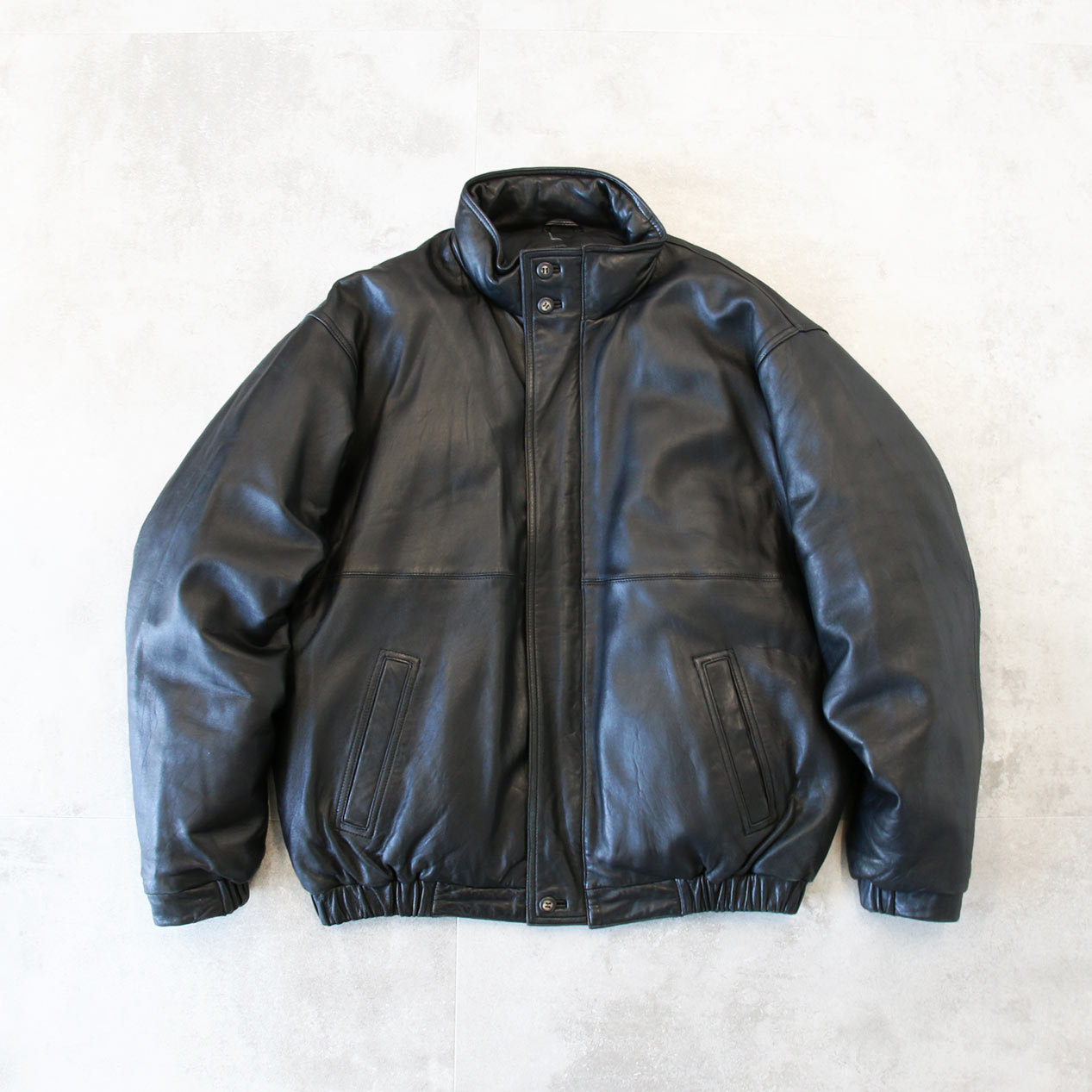 ・80’s EDDIE BAUER Leather Down Jacket Black [XL]