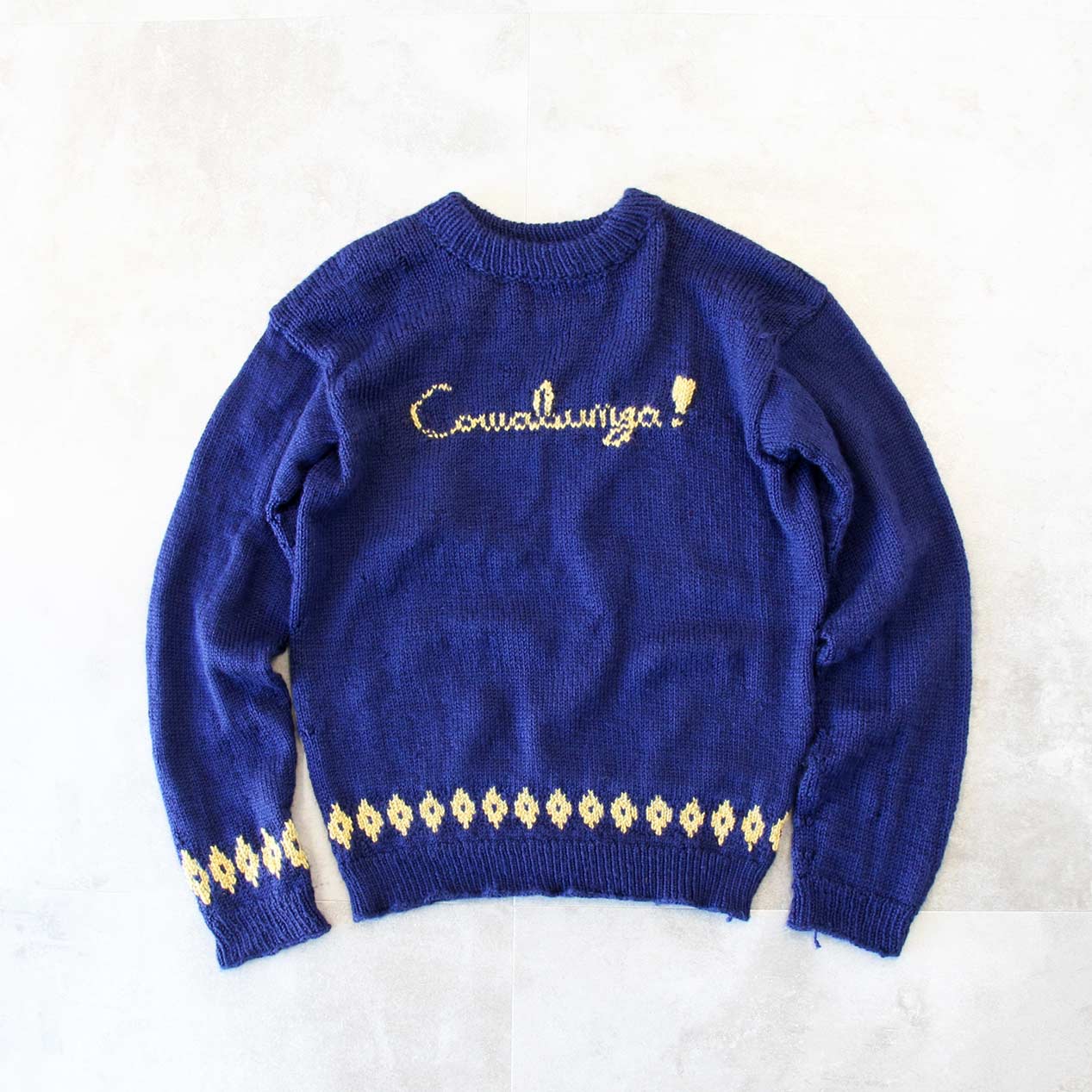 ・UNKNOWN “COWABUNGA!” Hand Made Knit Sweater [About L]