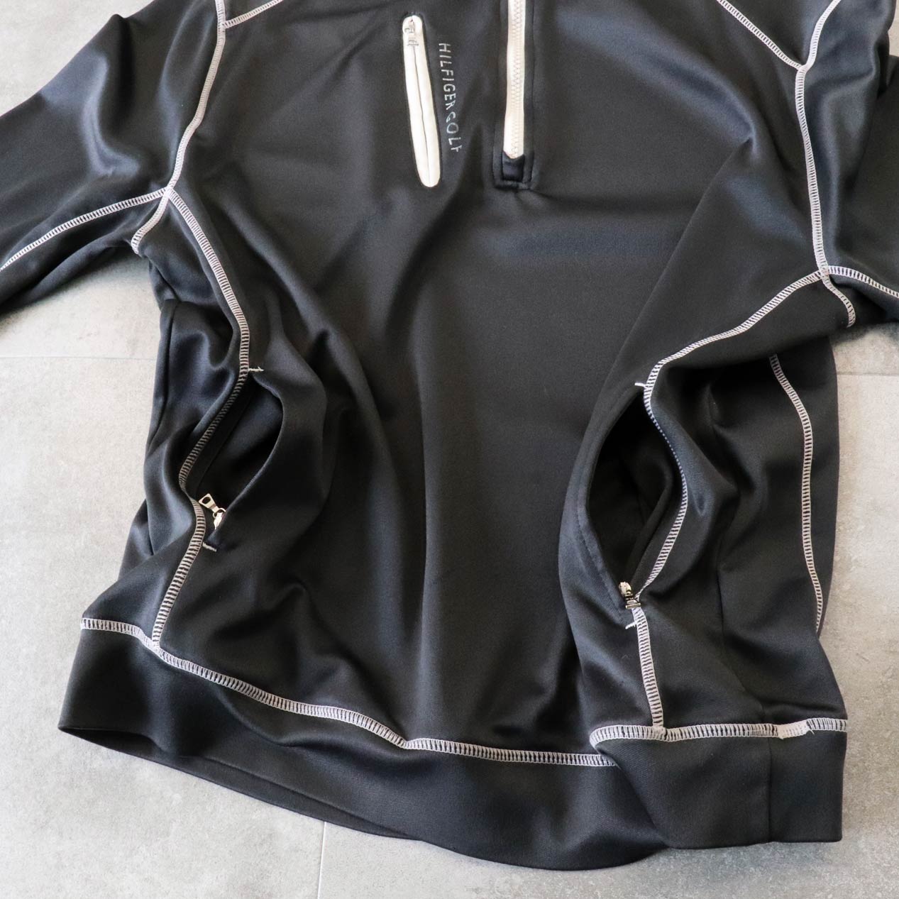 MODEL: TOMMY HILFIGER GOLF Jersey Pullover Jacket MADE IN: China AGE: 00's SIZE: L COLOR: チャコール MATERIAL: ポリエステル 100% COMMENT: 00年代 トミーヒルフィガーゴルフ