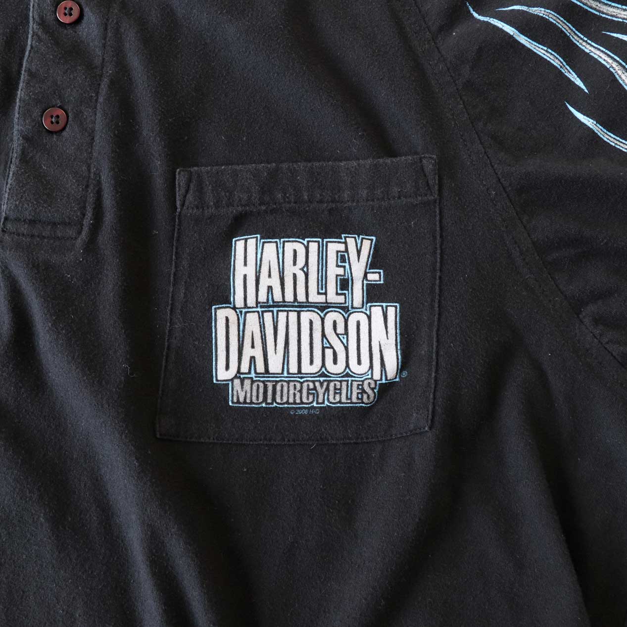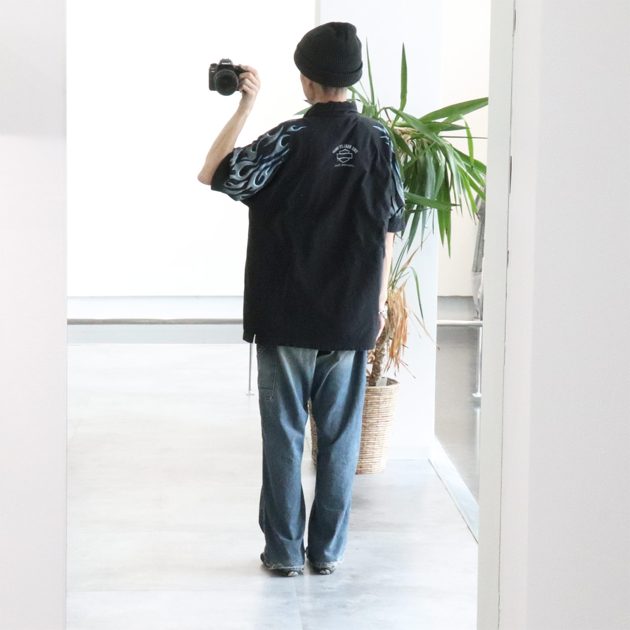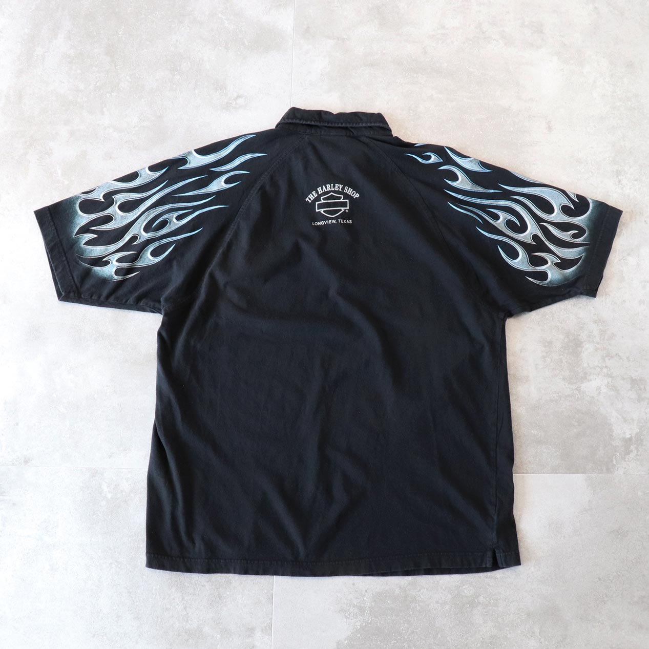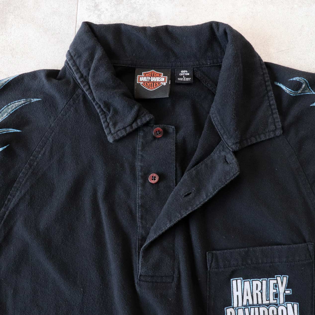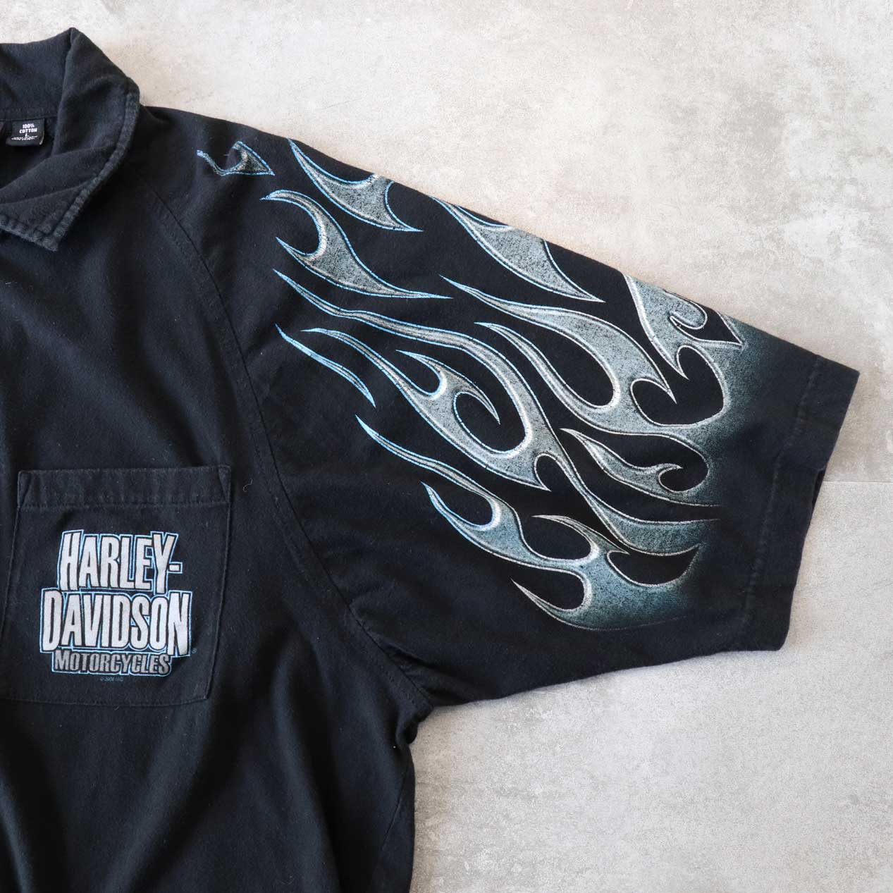 MODEL: HARLEY-DAVIDSON Blue Flames Patterned Polo Collar Shirt