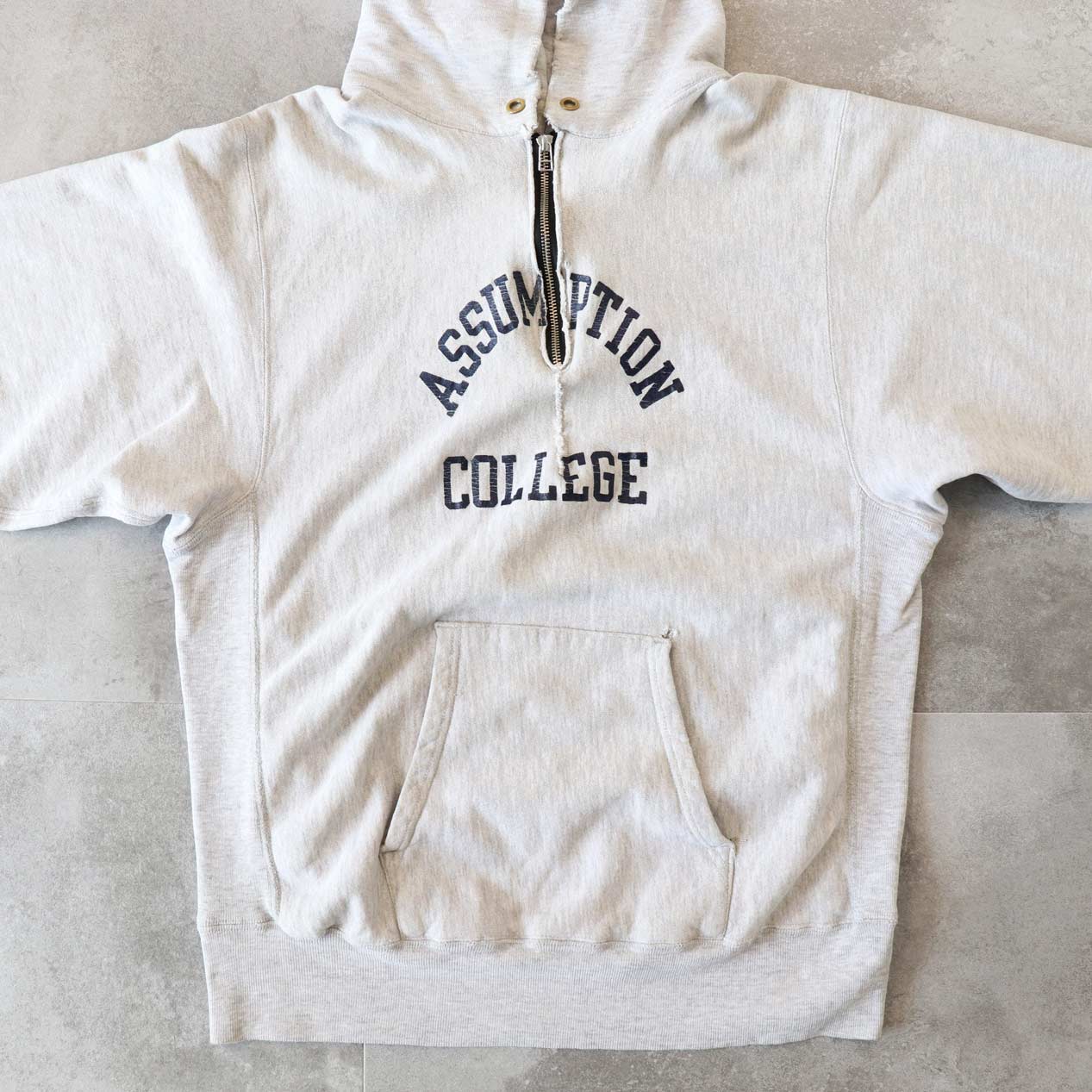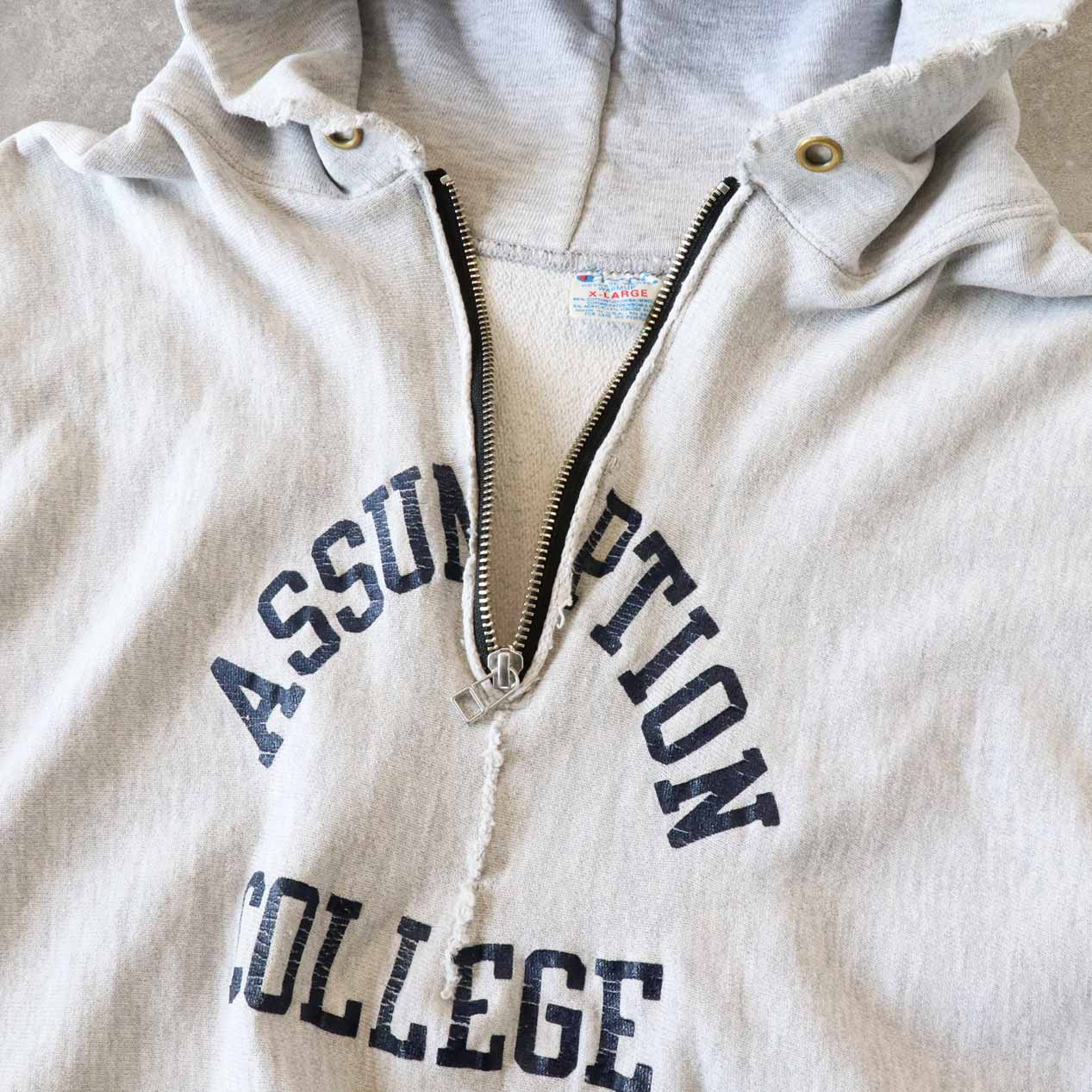80’s CHAMPION Half Zip Customized Reverse Weave Hoodie Made In U.S.A. [XL]