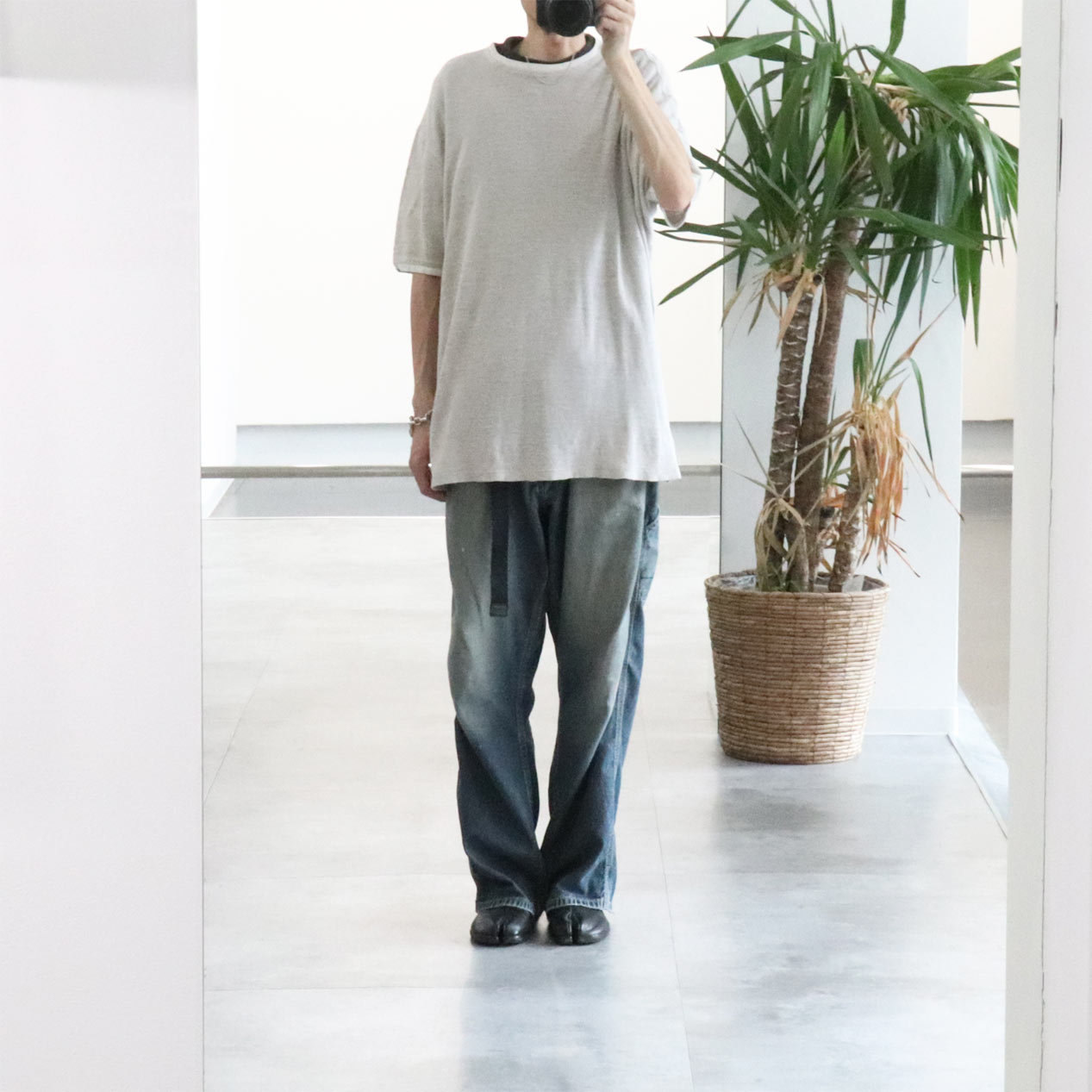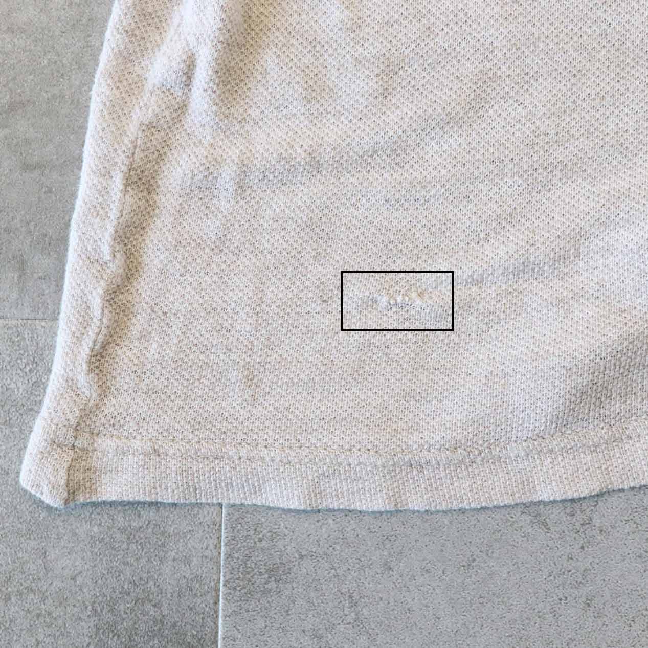 ・フロント: 右裾付近に手縫いリペア跡