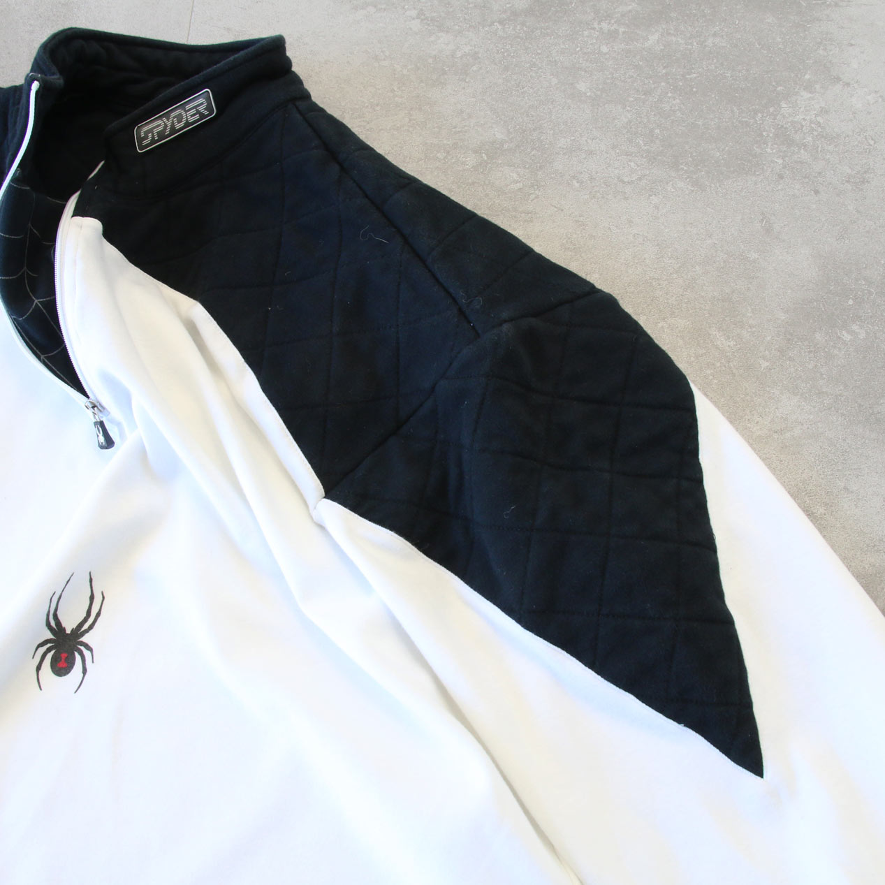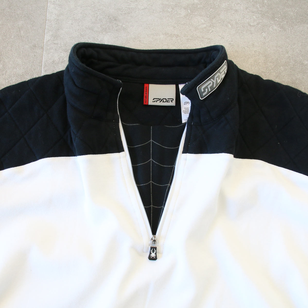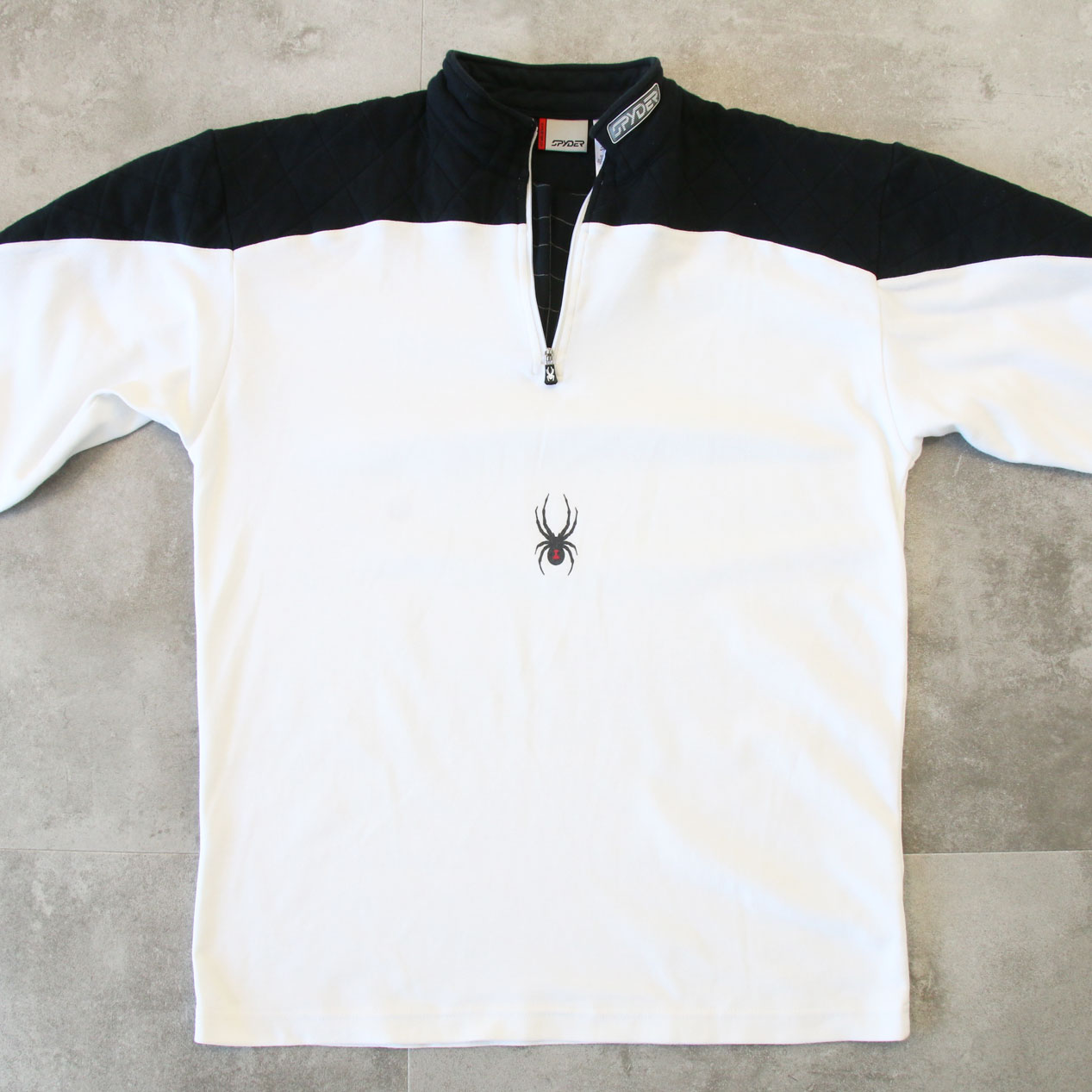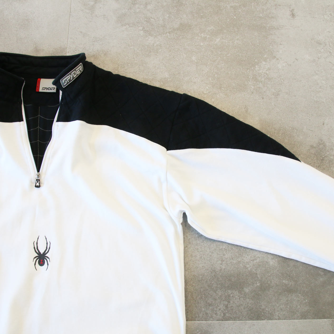 MODEL: SPYDER Half Zip Shirt MADE IN: El Salvador AGE: 00's SIZE: M COLOR: ホワイト/ブラック MATERIAL: コットン 100% COMMENT: 00年代 スパイダー