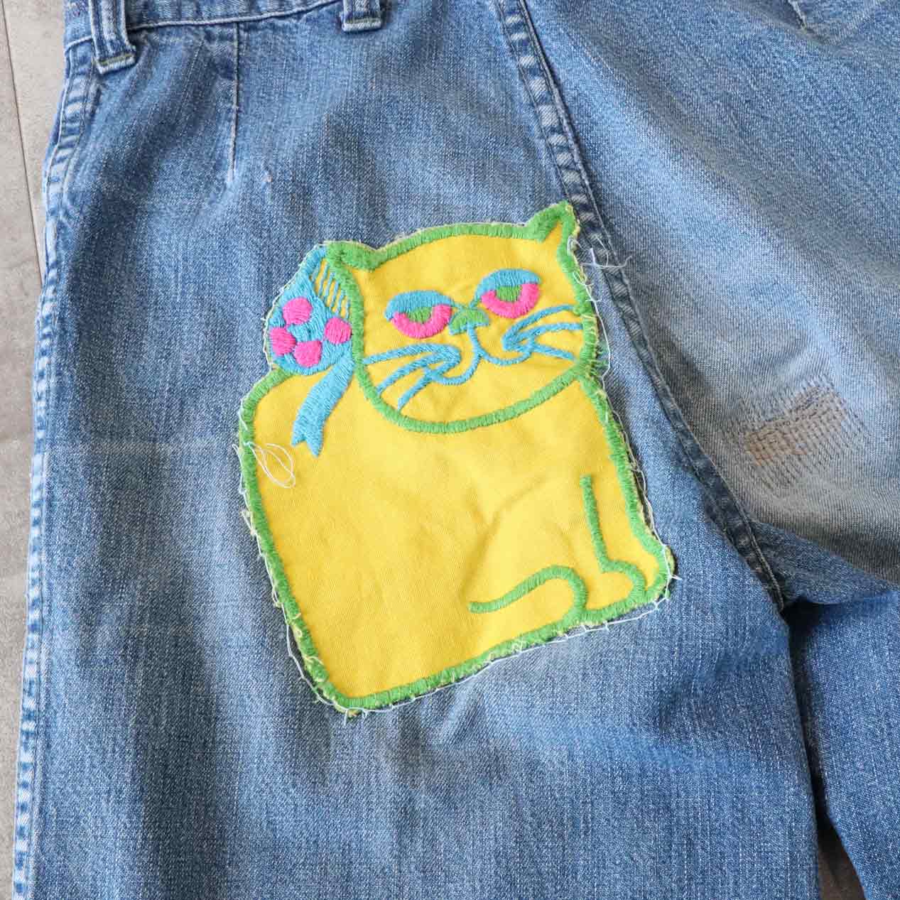 MODEL: CARIBOU Cat Patched Denim Pants