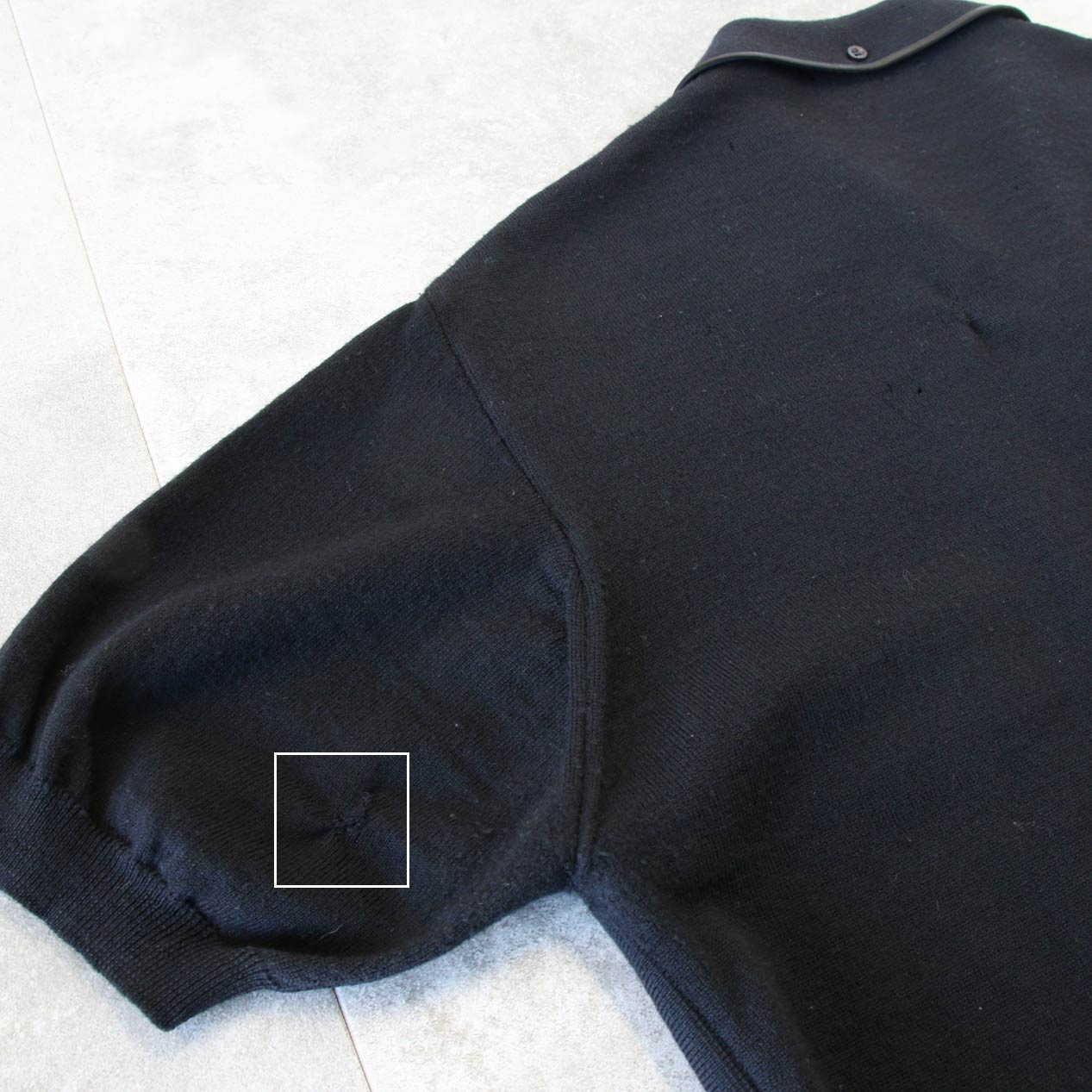 ・バック、袖: 小穴/手まつりリペア跡