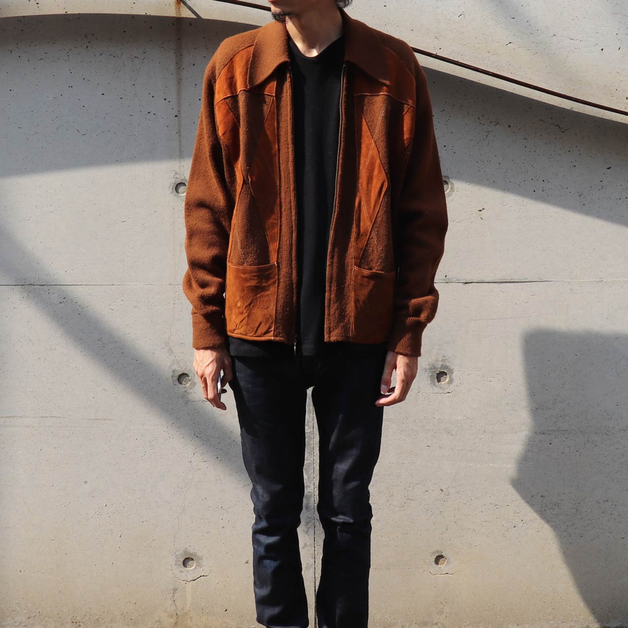 MODEL : MONTGOMERY WARD アーガイルレザーパッチ ニットジャケット