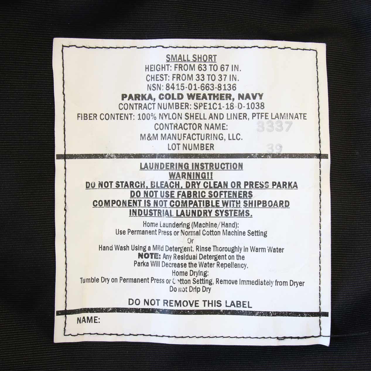 MODEL: U.S. NAVY Black Gore-Tex Cold Weather Parka
