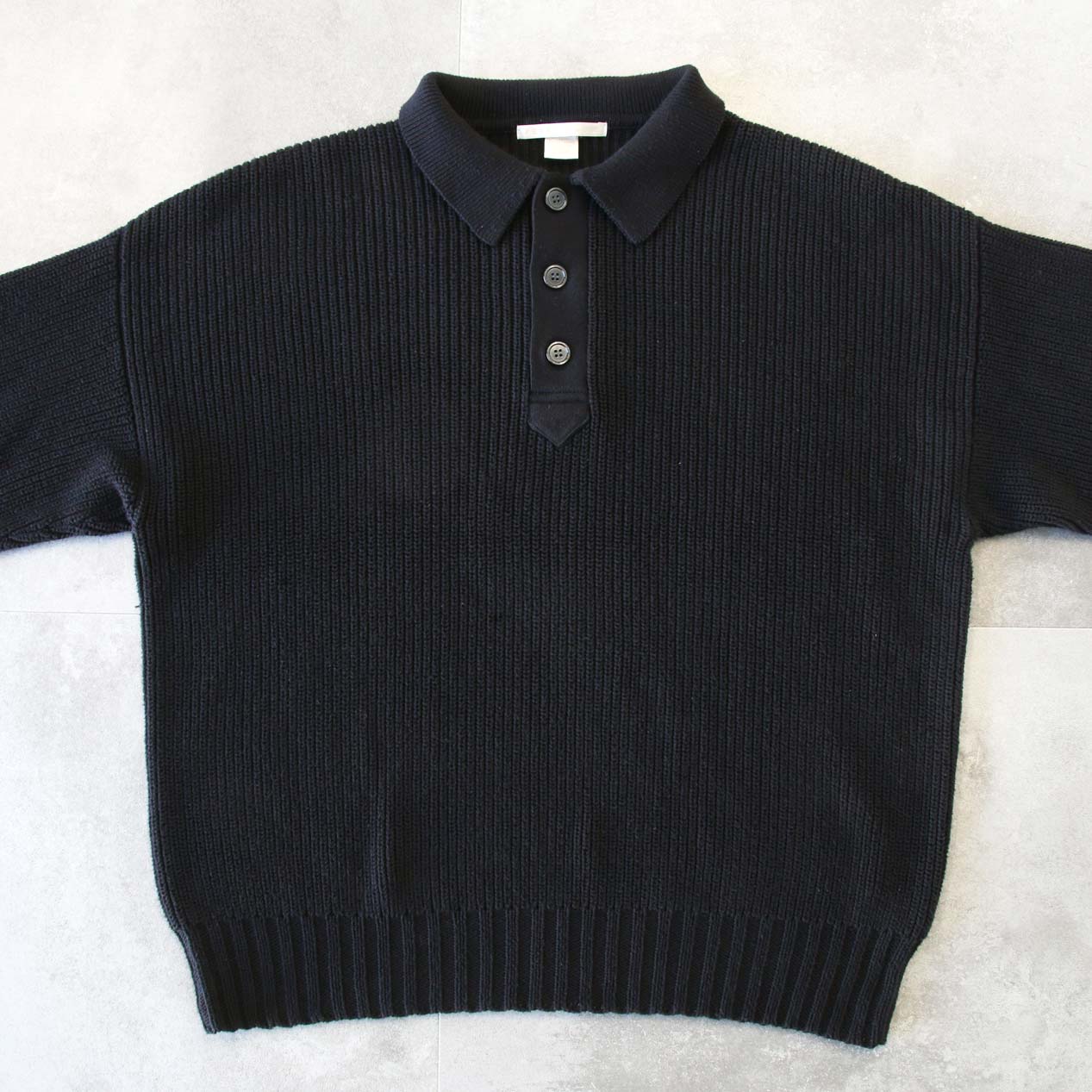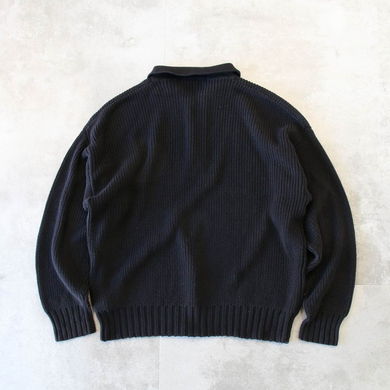 MODEL: PERRY ELLIS Polo Collared Black Cotton Knit Sweater MADE IN: Hong Kong AGE: 90's SIZE: XL COLOR: ブラック MATERIAL: コットン 100% COMMENT: 90年代 ペリーエリス