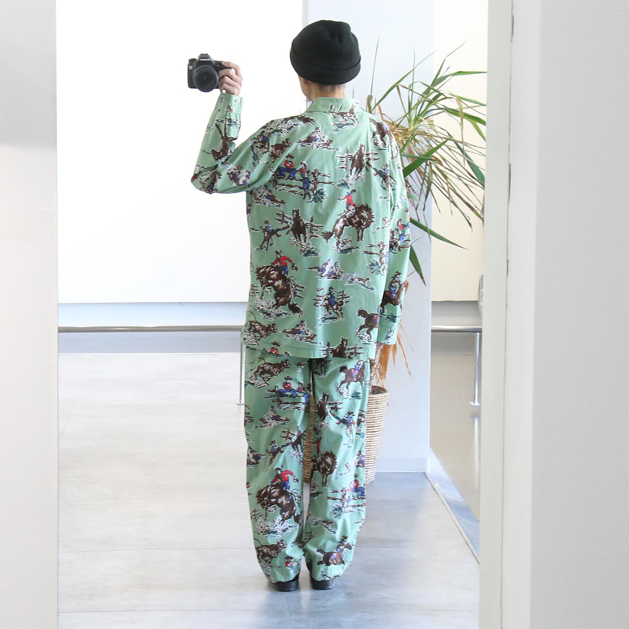 MODEL: NICK & NORA Cowboy Patterned Pajamas Set Up