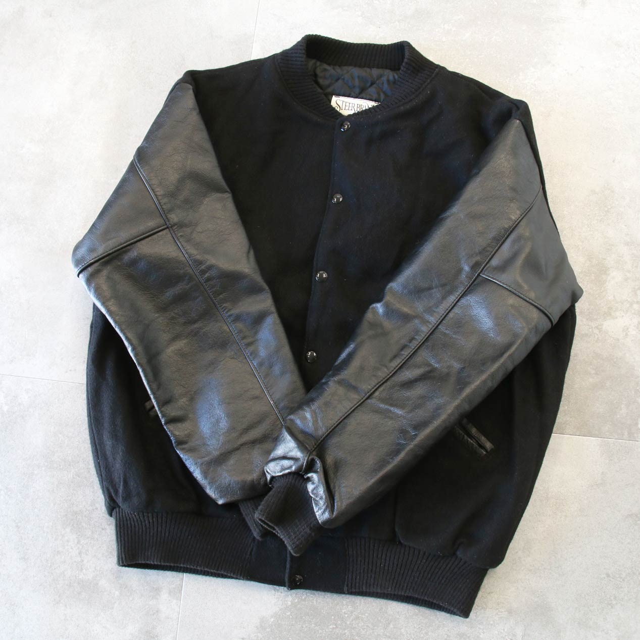 MODEL: STEER BRAND “SOLID BLACK” Varsity Jacket