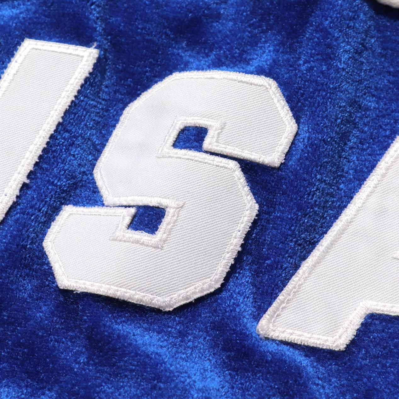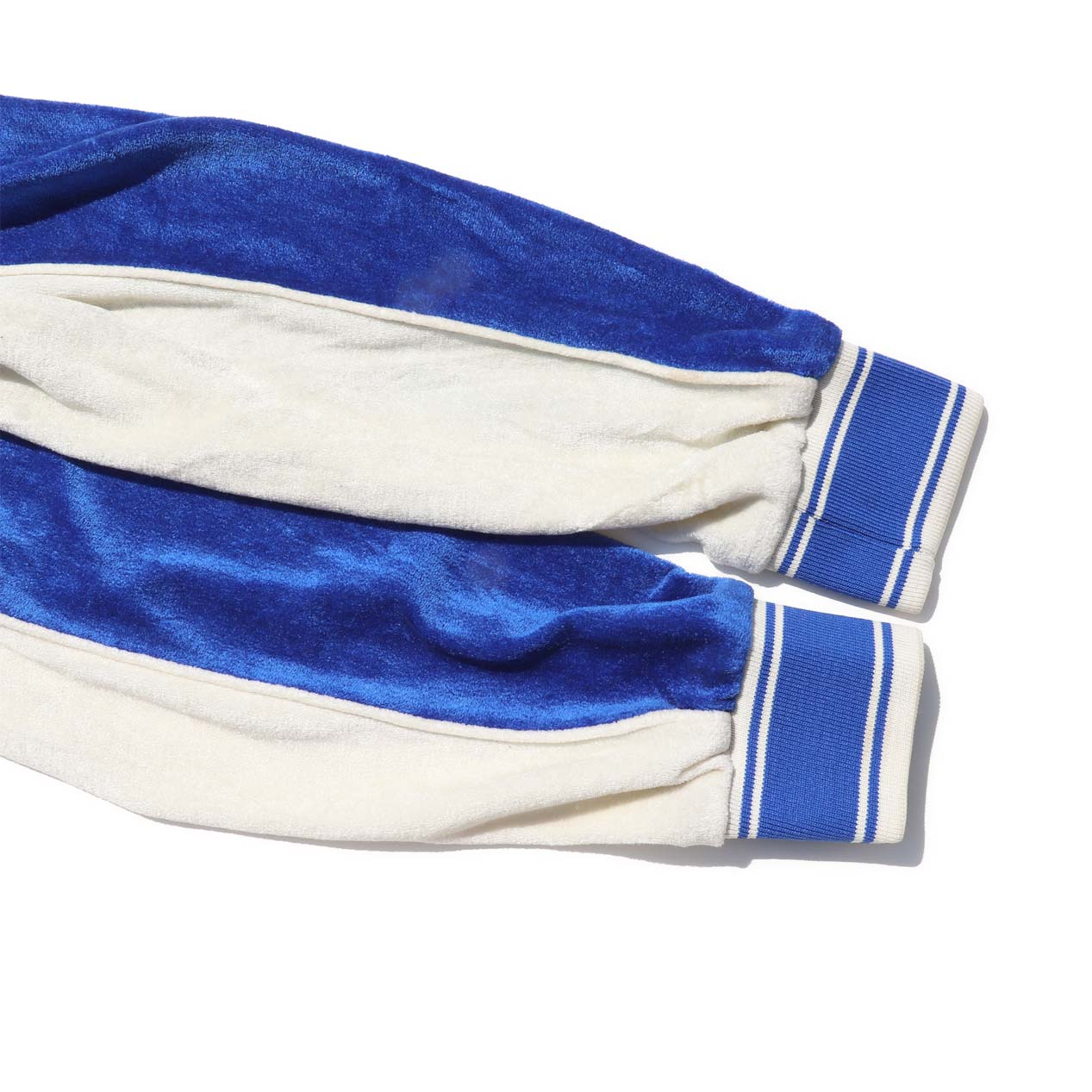 ブルー×ホワイト切替のベロア生地です。