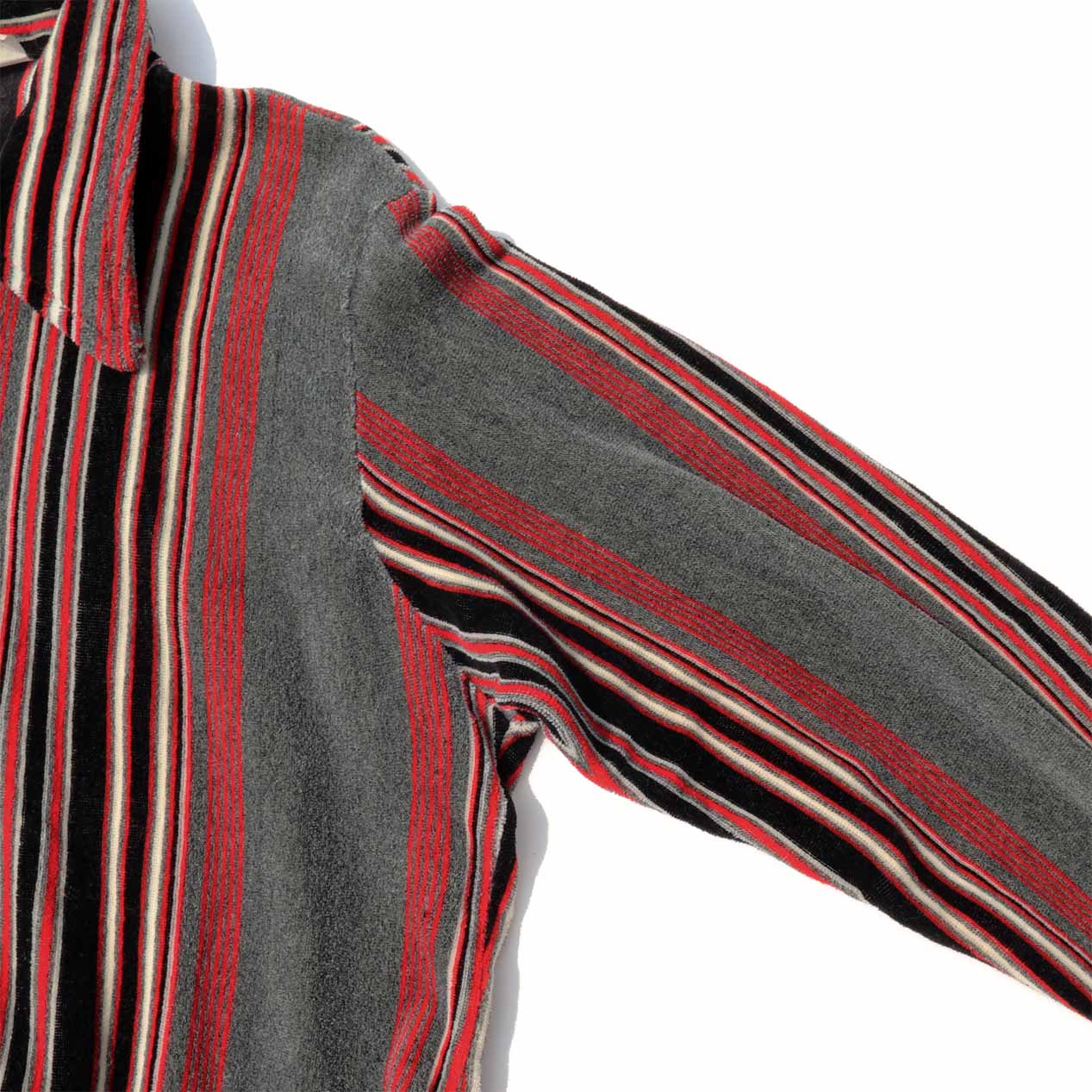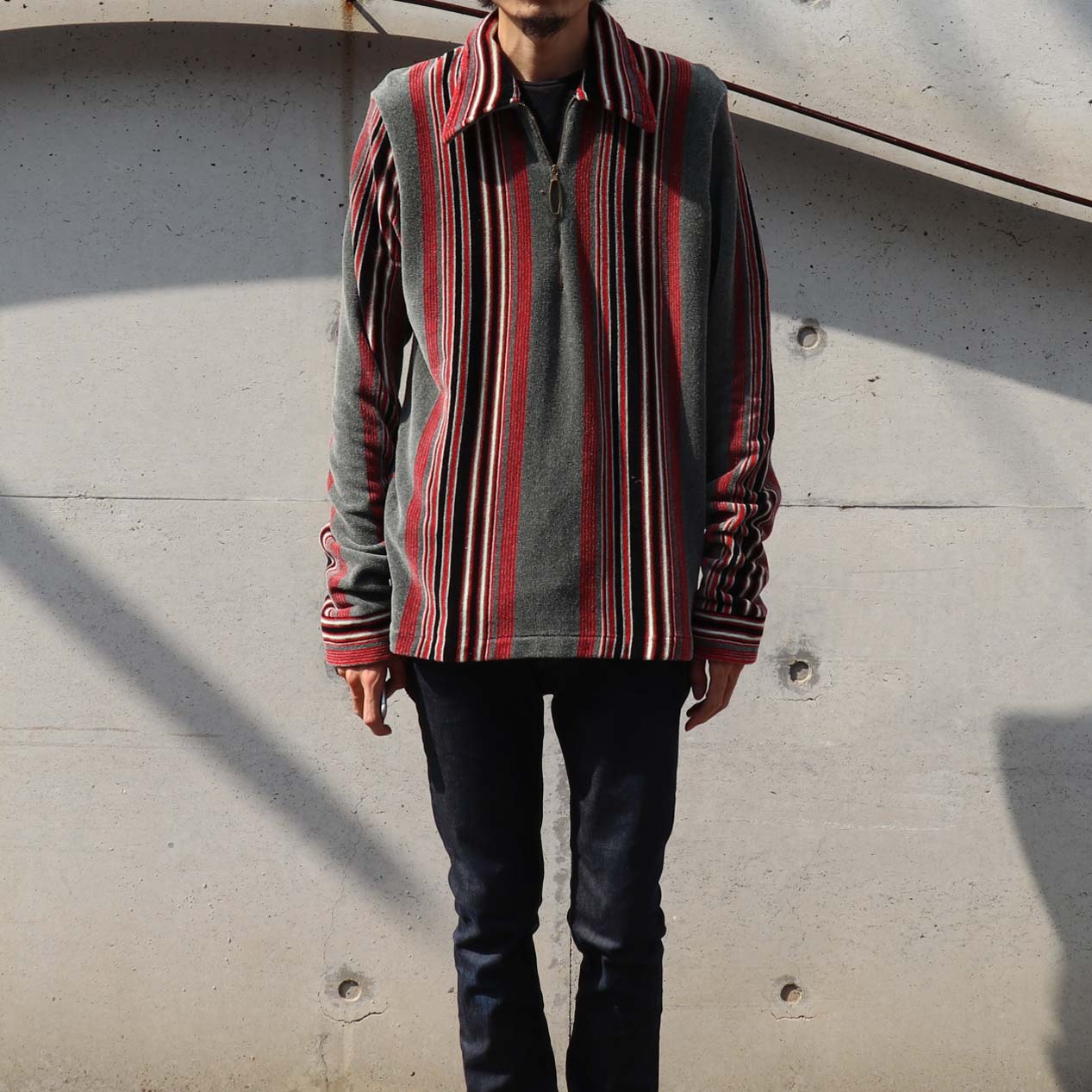 MODEL : CAMPUS マルチストライプ プルオーバーニットシャツ MANUFACTURE : Made In U.S.A. AGE : 70’s SIZE : M COLOR : グレーベース×レッド系 MATERIAL : --- (おそらくアクリル) COMMENT : 70年代、キャンパスのプルオーバーシャツです。