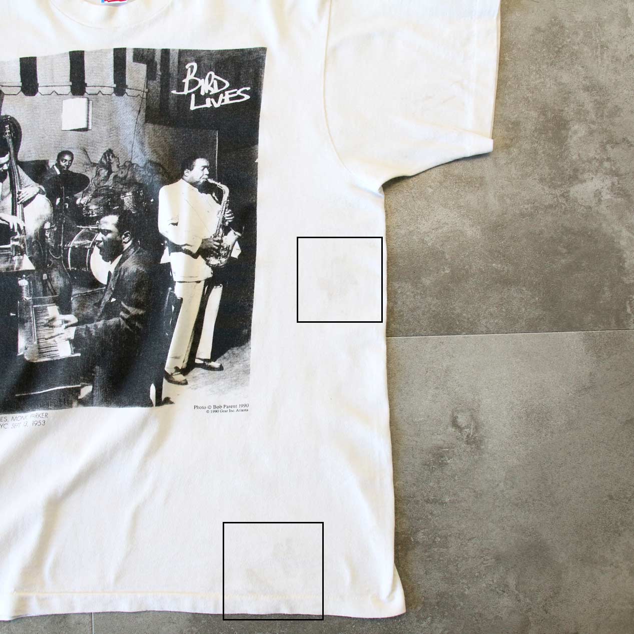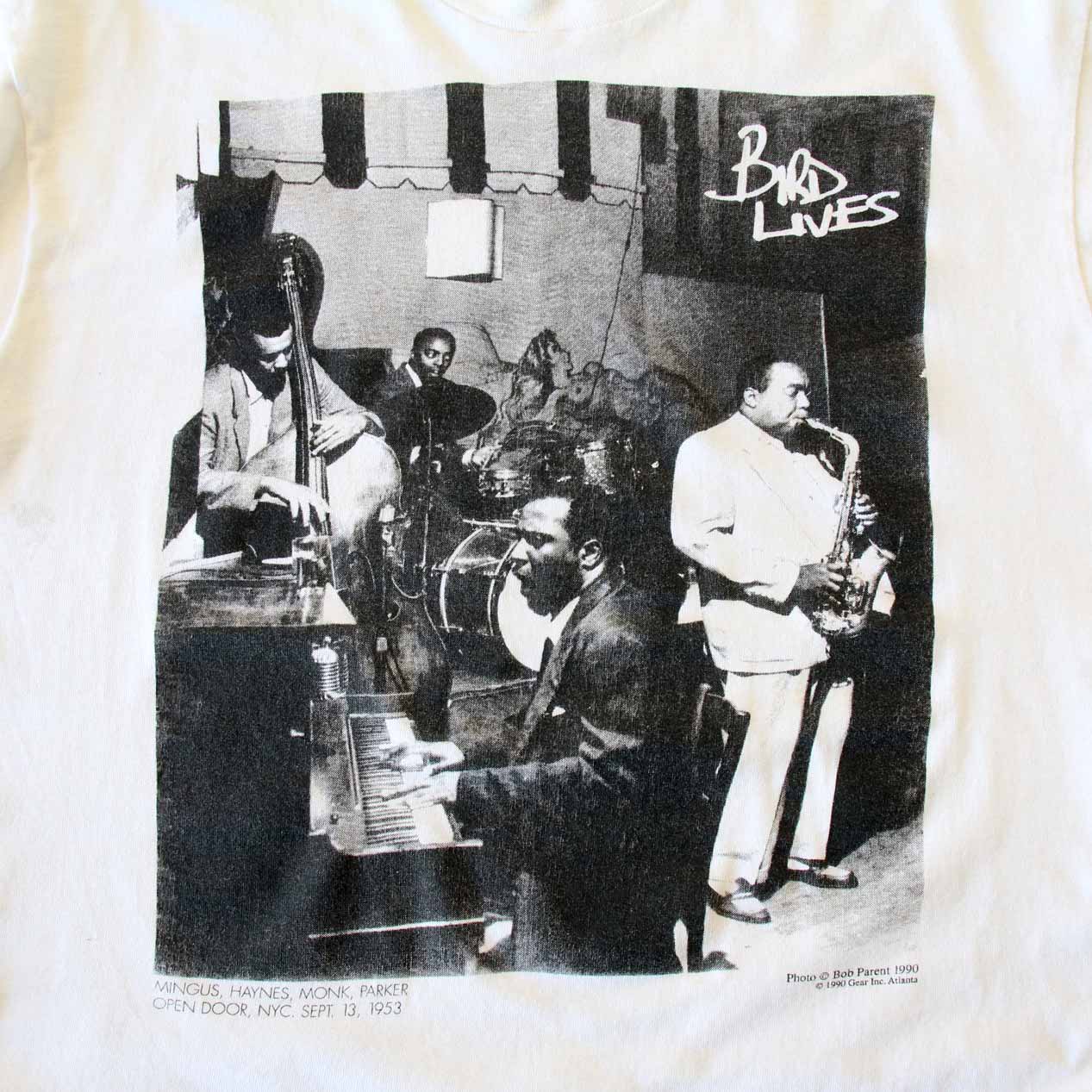MODEL: CHARLIE PARKER “BIRD LIVES” T-Shirt MADE IN: U.S.A. AGE: 90's SIZE: L COLOR: ホワイト MATERIAL: コットン 100% COMMENT: 90年代 チャーリーパーカー Tシャツ