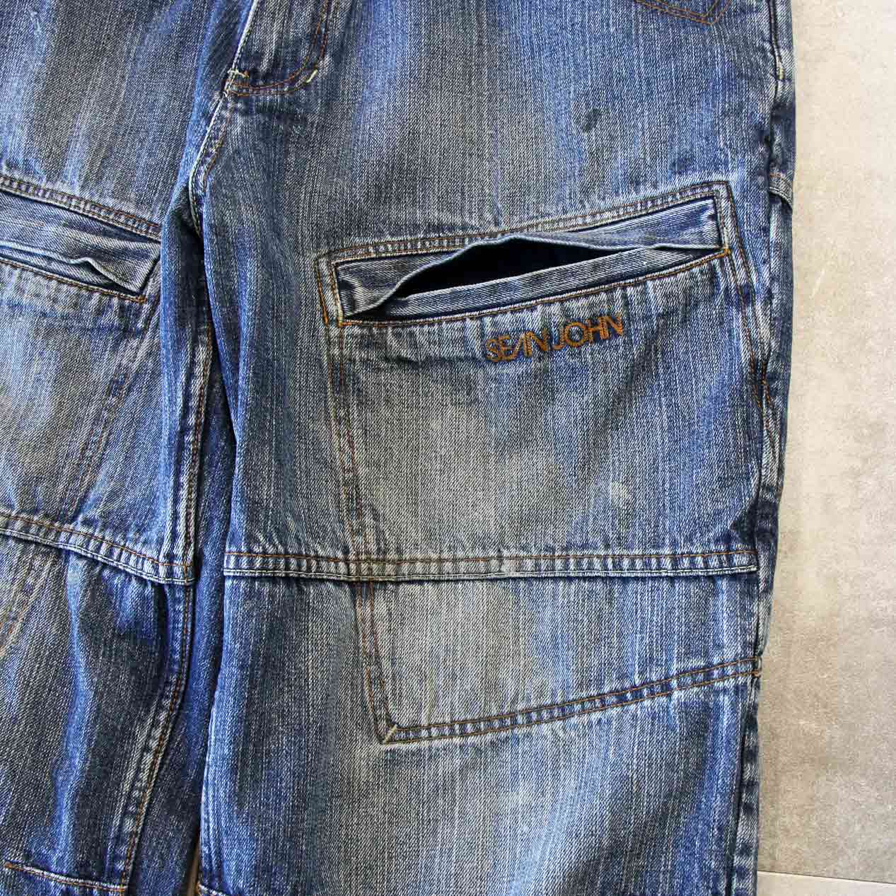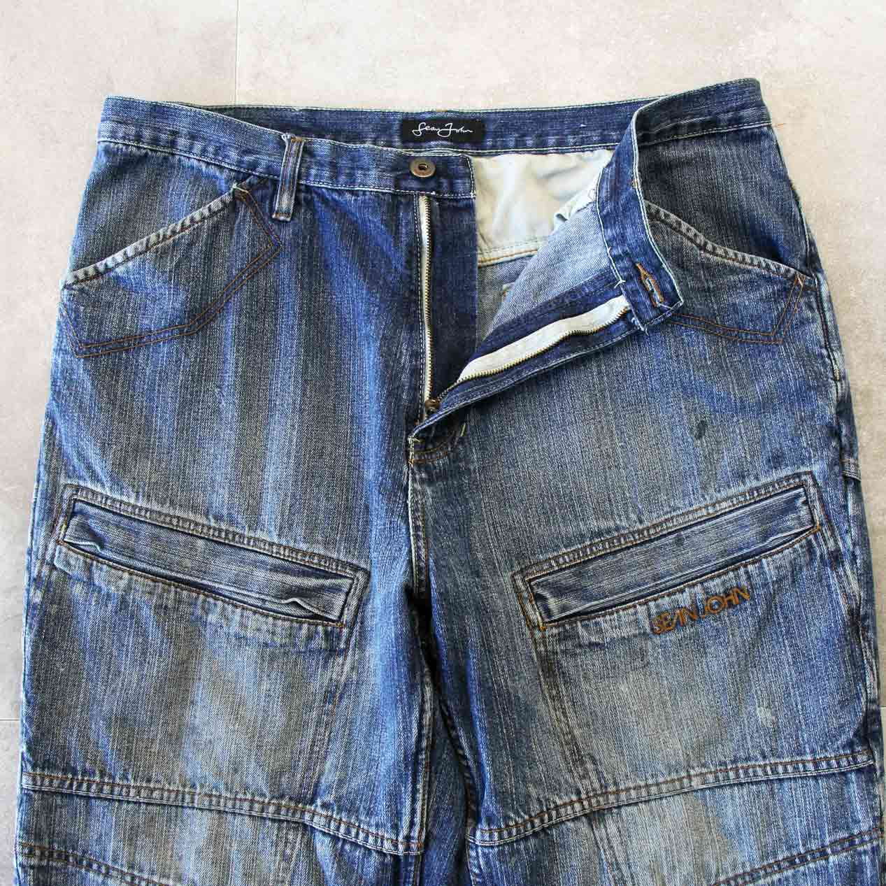 MODEL: SEAN JOHN Multi Pocket Denim Pants MADE IN: China AGE: 00's SIZE: W38 (実寸: W / L 相当) COLOR: ブルー MATERIAL: コットン 100% COMMENT: 00年代 ショーンジョン