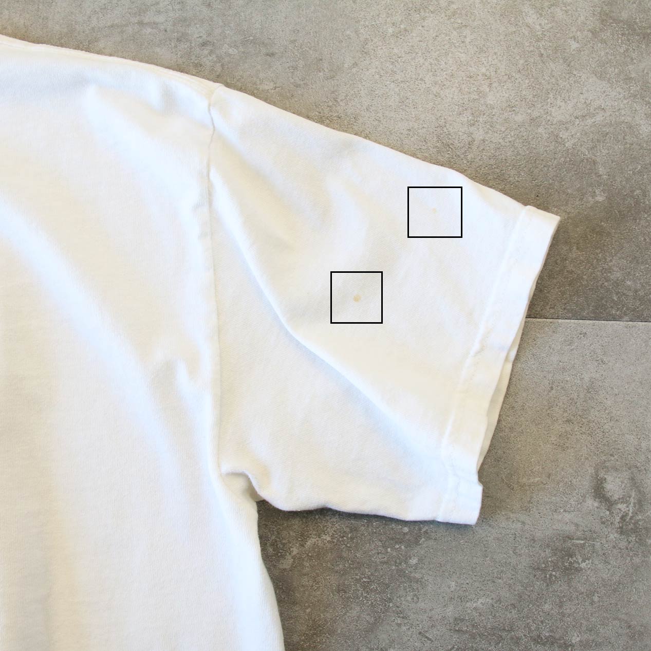 ・フロント、袖: 身頃左裾/右袖に軽微な汚れ