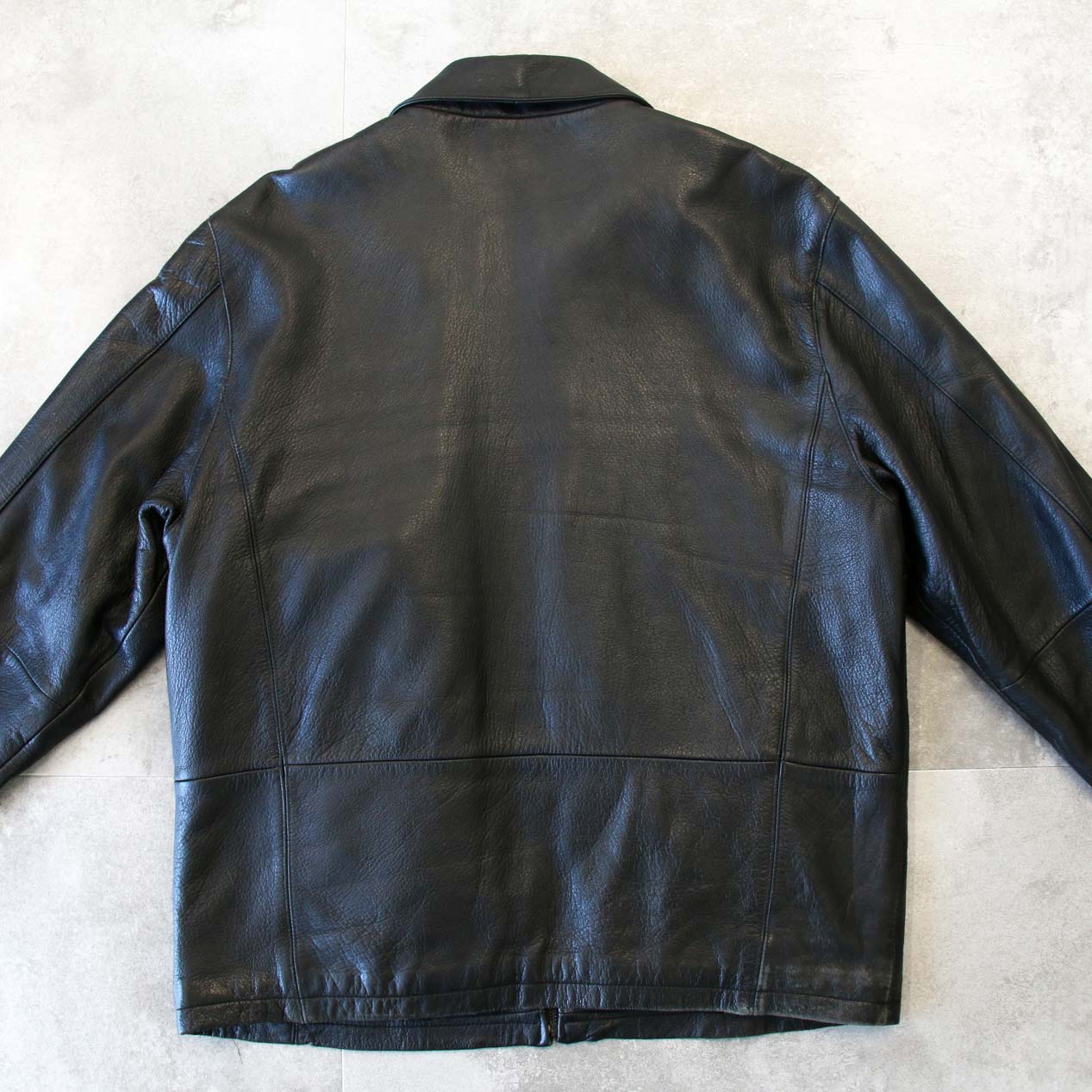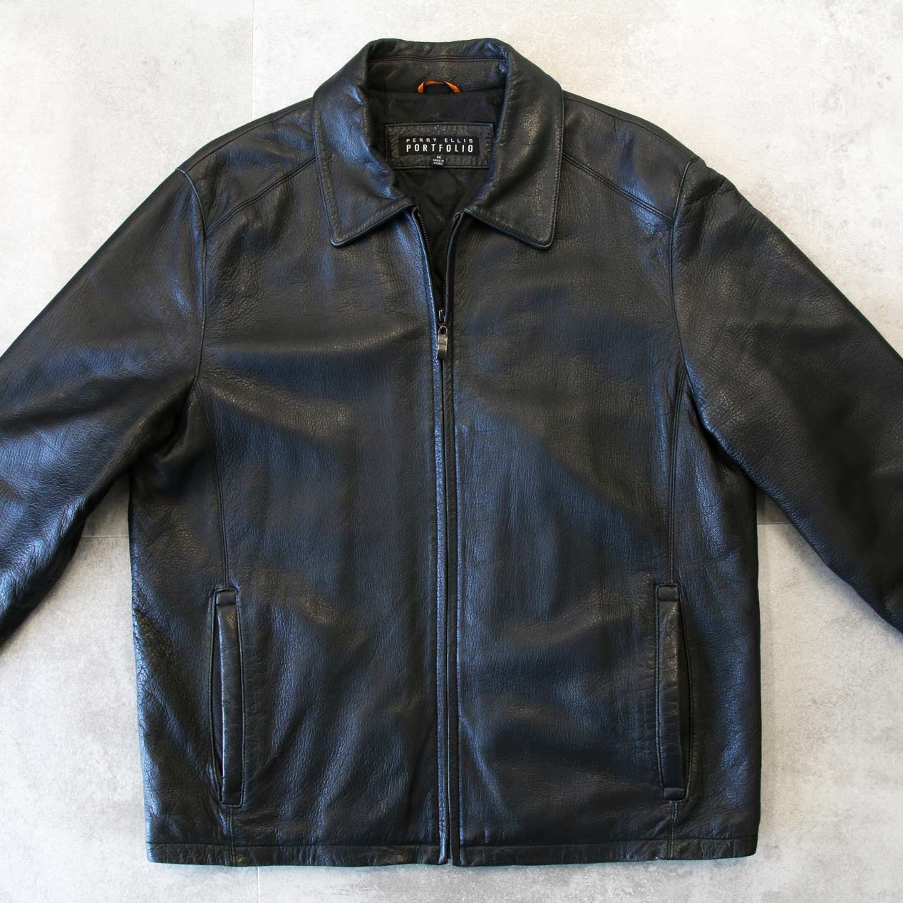 MODEL: PERRY ELLIS PORTFOLIO Very Good Leather Jacket MADE IN: China AGE: 90's SIZE: M COLOR: ブラック MATERIAL: 本革 COMMENT: 90年代 ペリーエリスポートフォリオ レザージャケット