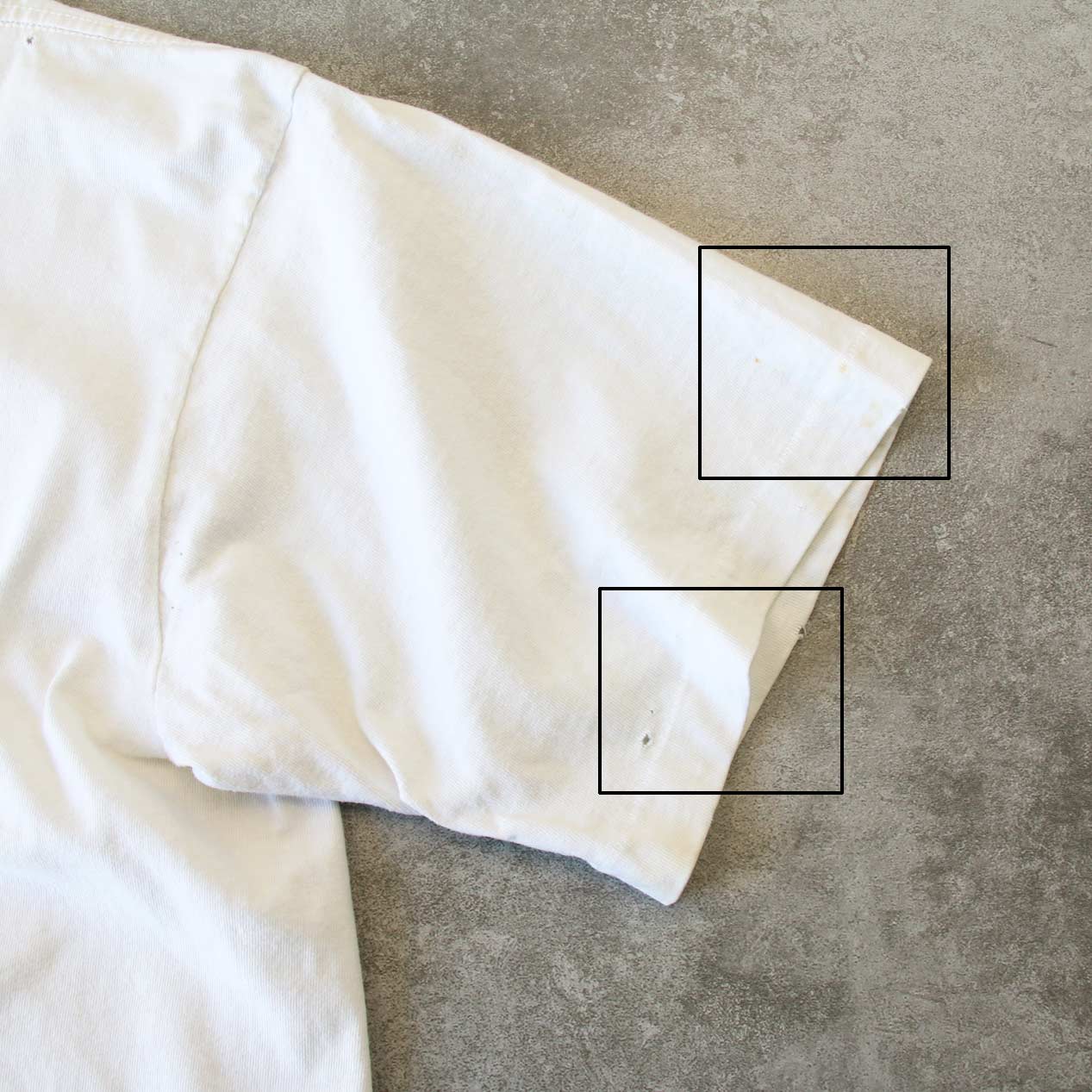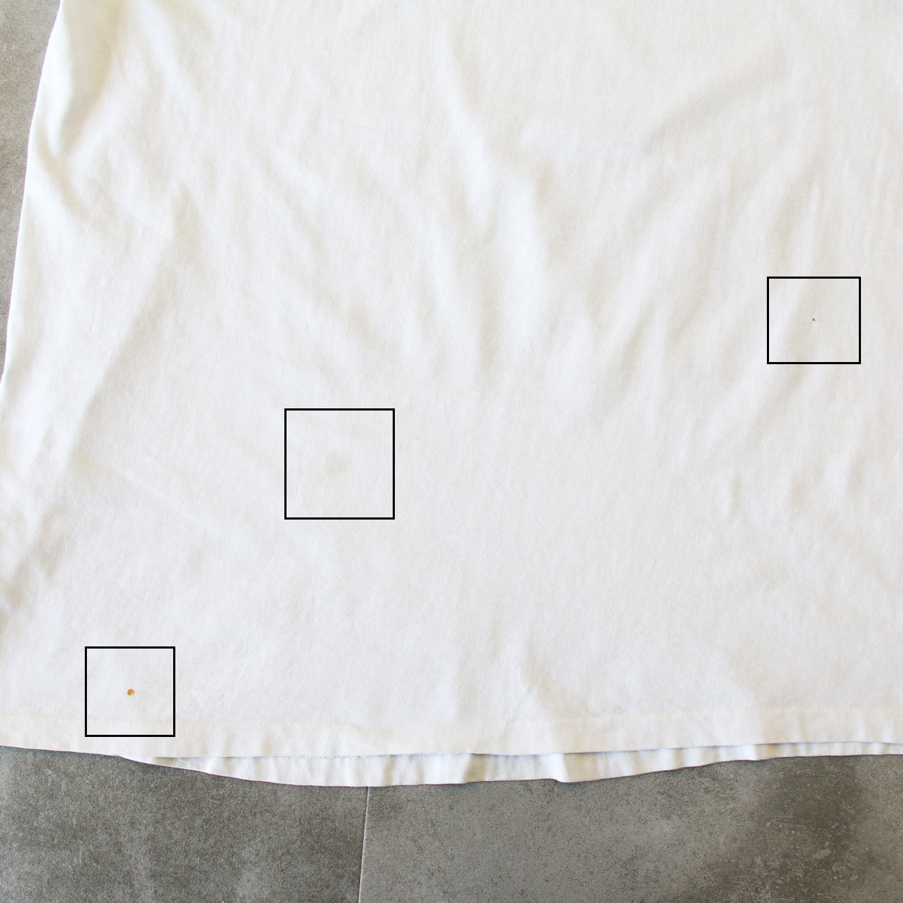 ・フロント、バック: 薄い汚れ、小穴