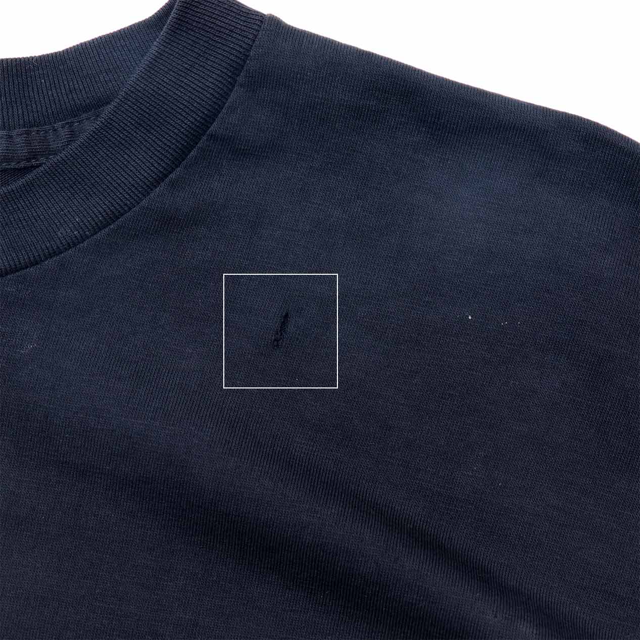 ・フロント : 左肩付近、プリント下部に穴