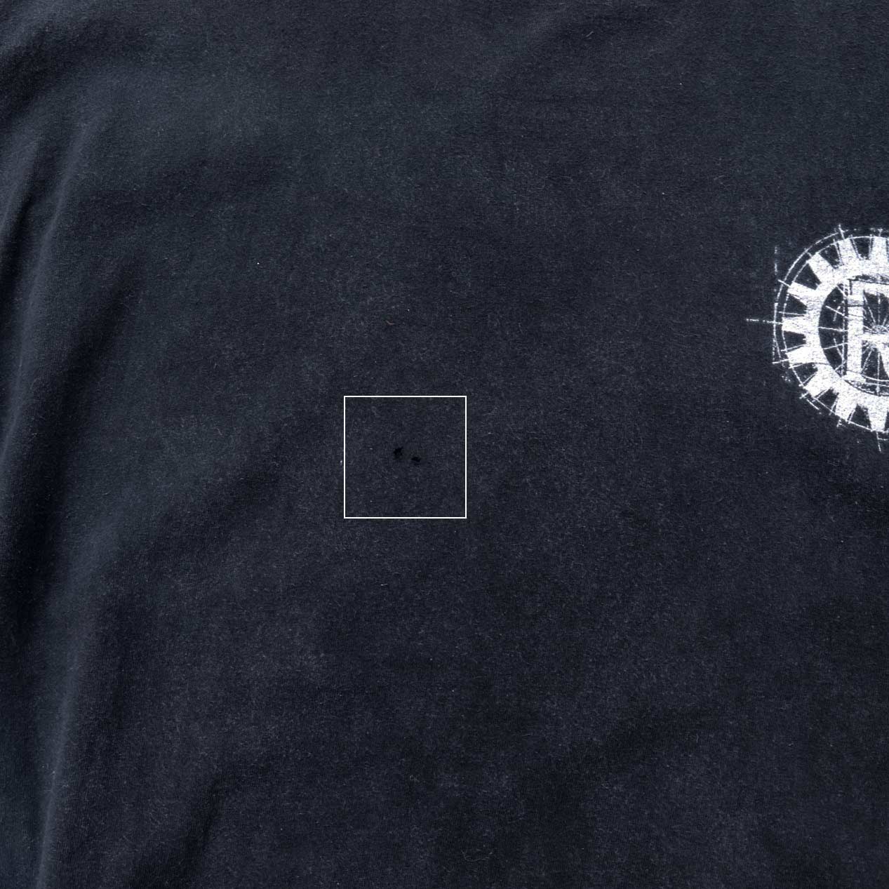 全体的に着用感や胸部付近に小穴はありますが、古着の味として楽しめる範囲だと思います。