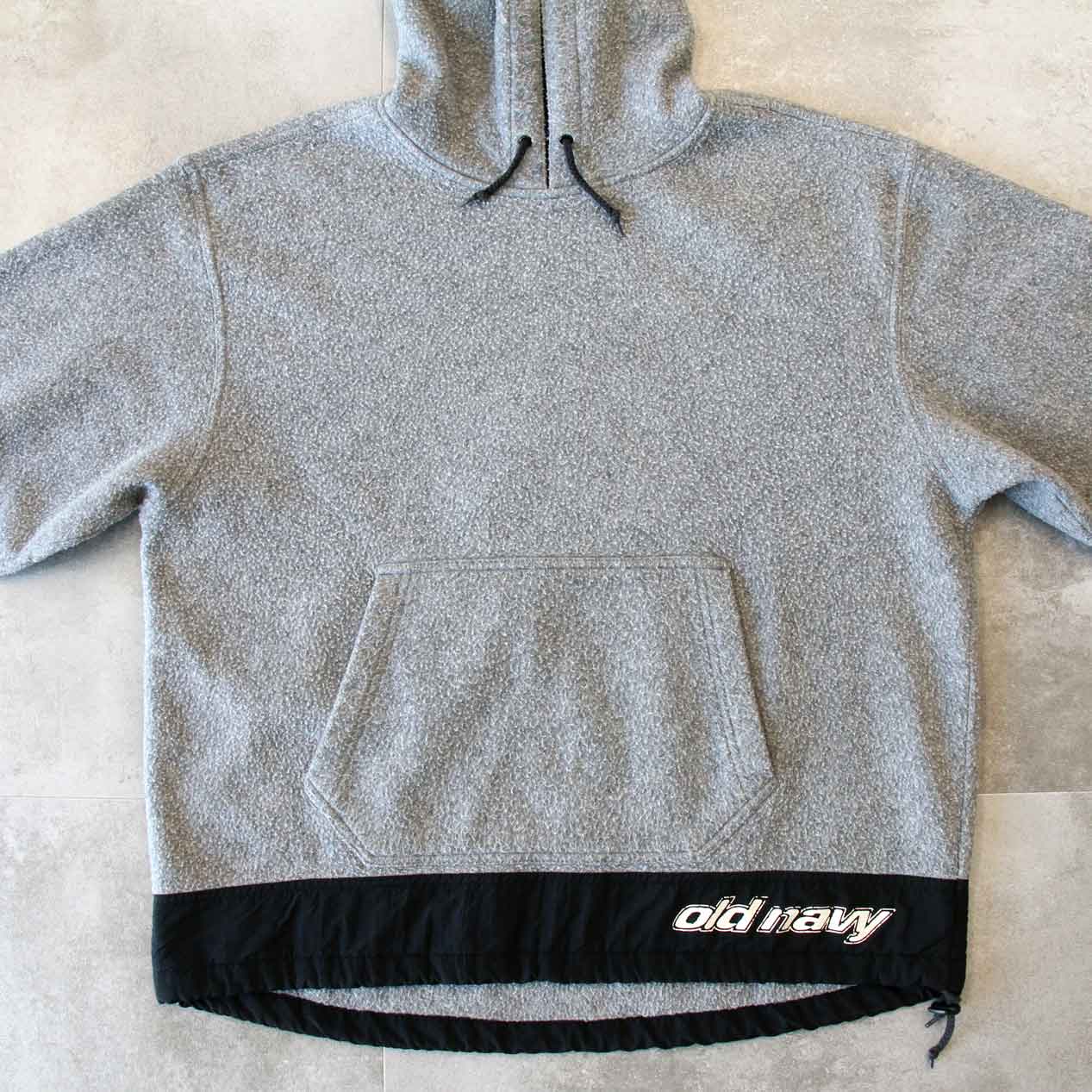 MODEL: OLD NAVY Fleece / Rayon Pullover Hoodie MADE IN: Indonesia AGE: 90's SIZE: L COLOR: グレー/ブラック MATERIAL: ポリエステル 75% レーヨン 25% COMMENT: 90年代 オールドネイビー フリースパーカー