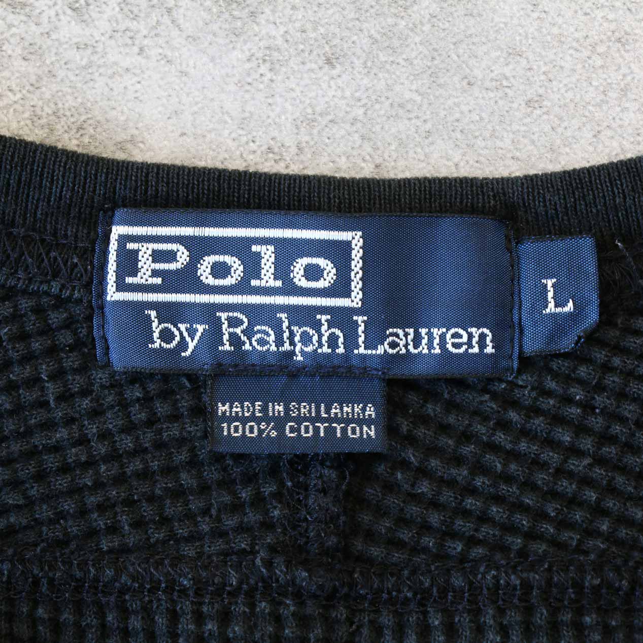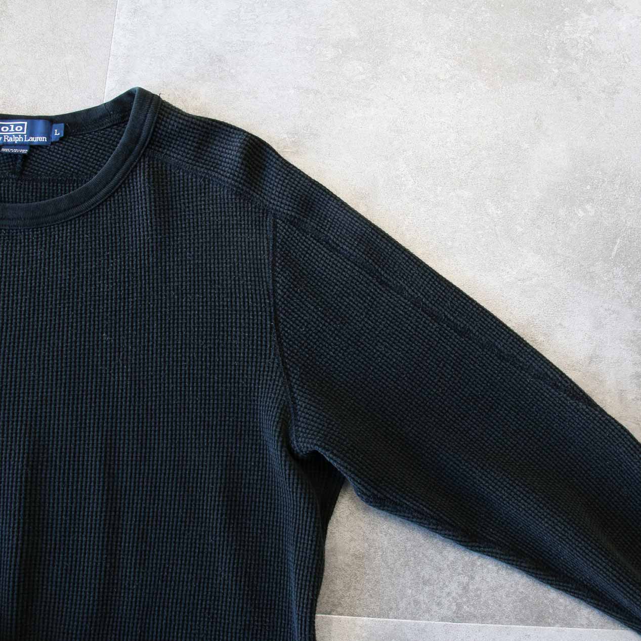 MODEL: POLO RALPH LAUREN Thermal T-Shirt MADE IN: Sri Lanka AGE: 90's~ SIZE: L COLOR: ブラック MATERIAL: コットン 100% COMMENT: 90年代~ ポロラルフローレン サーマルTシャツ