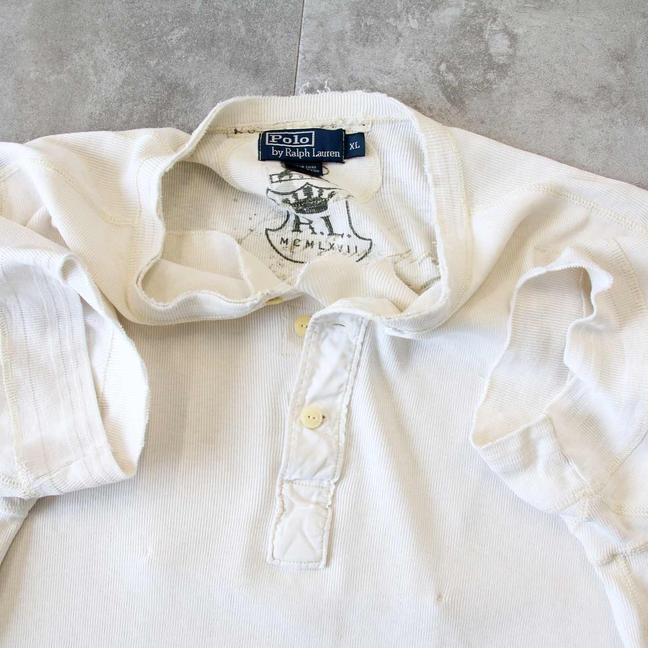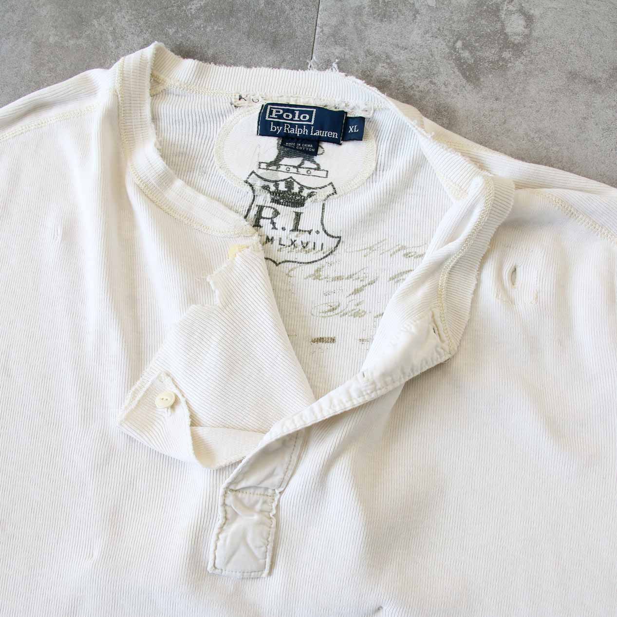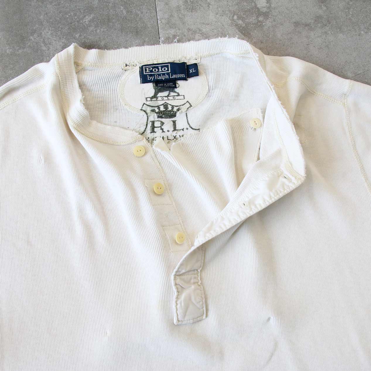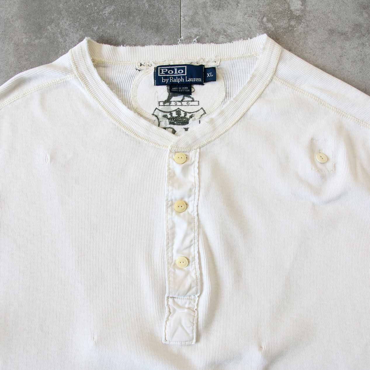 MODEL: POLO RALPH LAUREN Double Layer Front Rib Knit Henry Neck T-Shirt MADE IN: China AGE: 90's~ SIZE: XL COLOR: アイボリー MATERIAL: コットン 100% COMMENT: 90年代~ ポロラルフローレン リブニットTシャツ