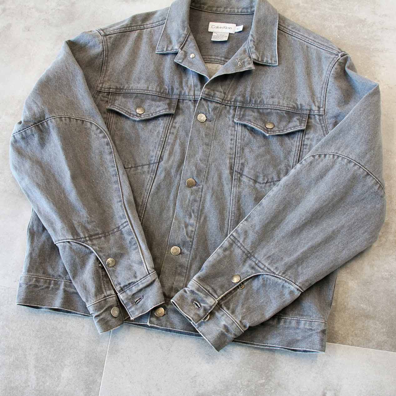 MODEL: CALVIN KLEIN Yarn Dyed Gray Denim Trucker Jacket