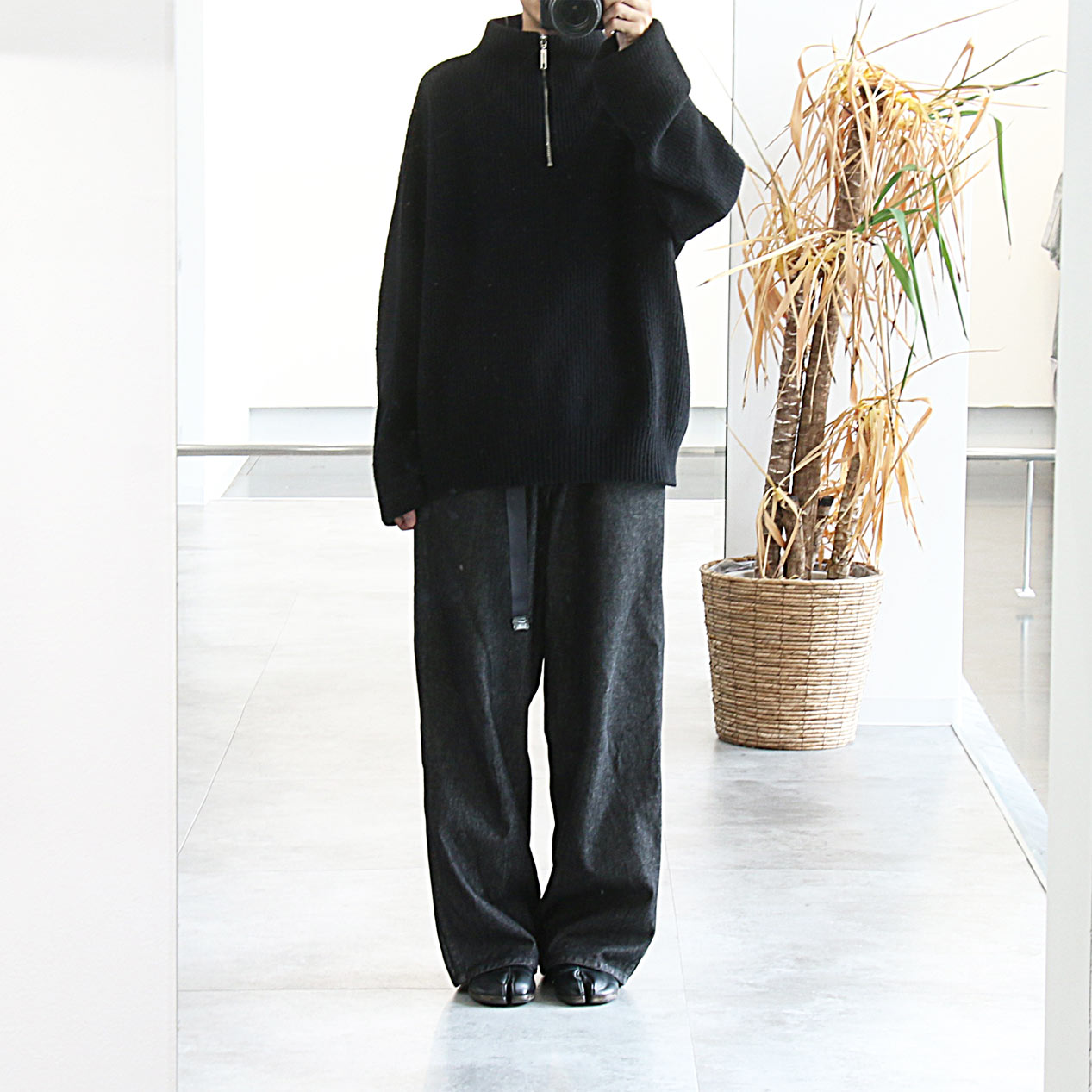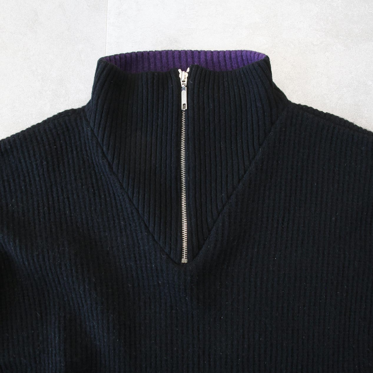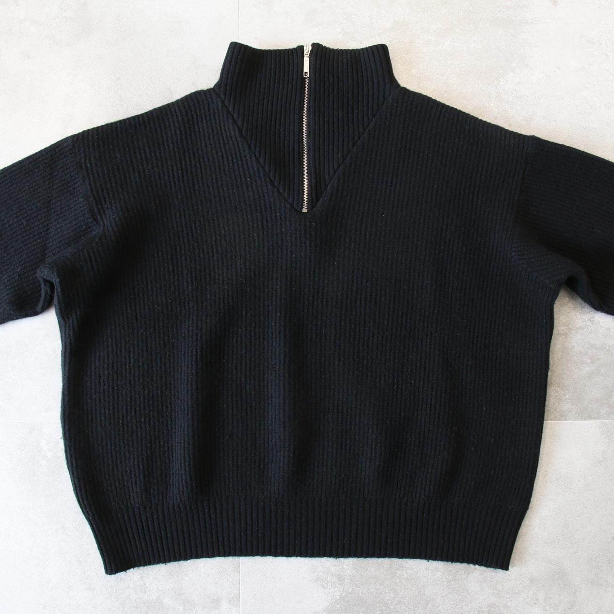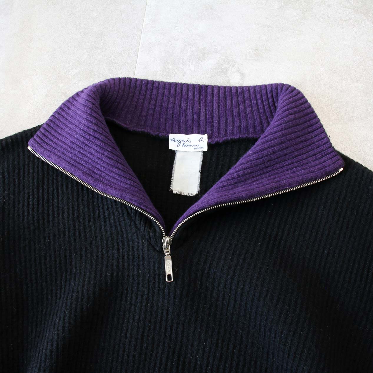 MODEL: agnes b. Wide Shaped Half Zip Pullover Knit Sweater