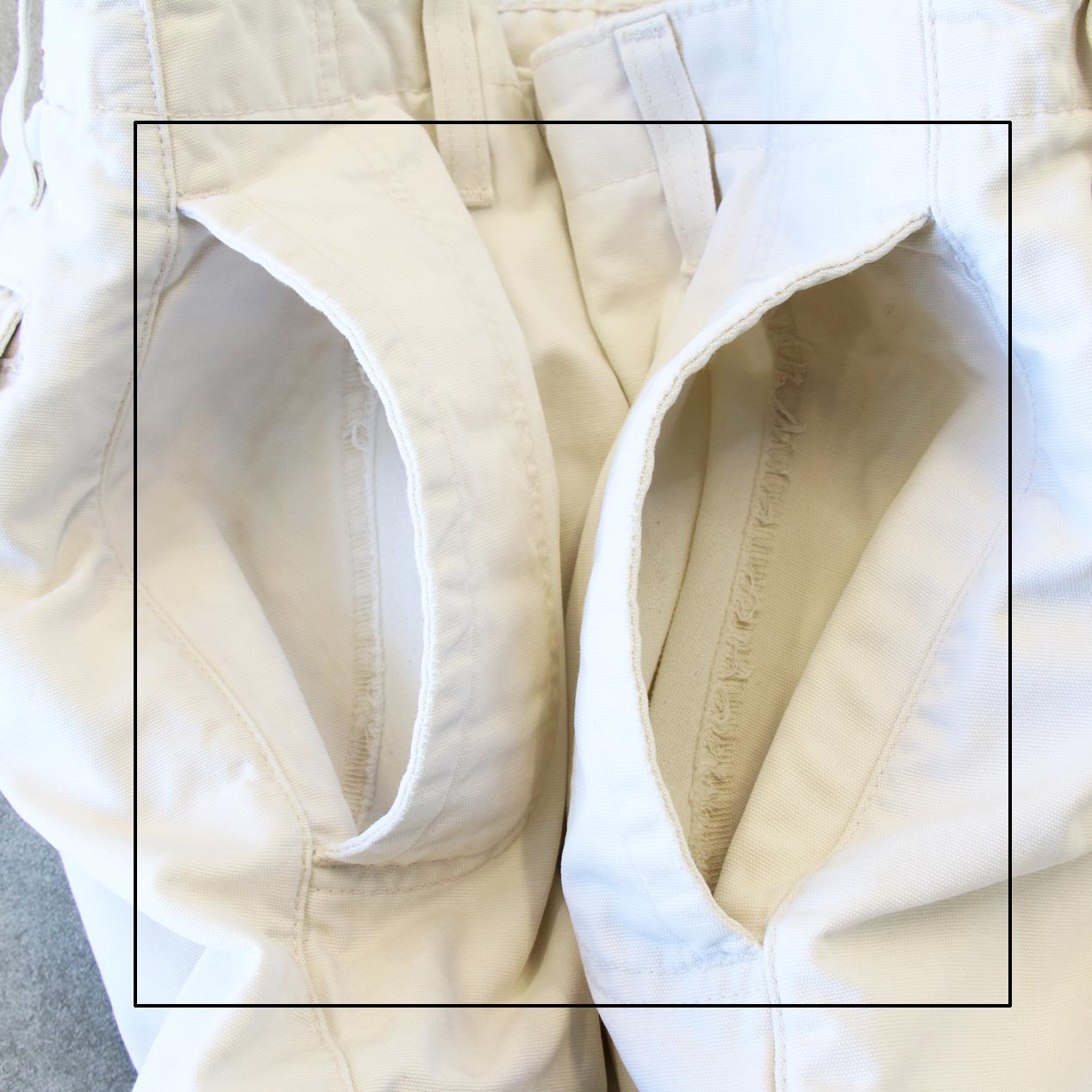 ・バック: 両脚裾にスレ破れ