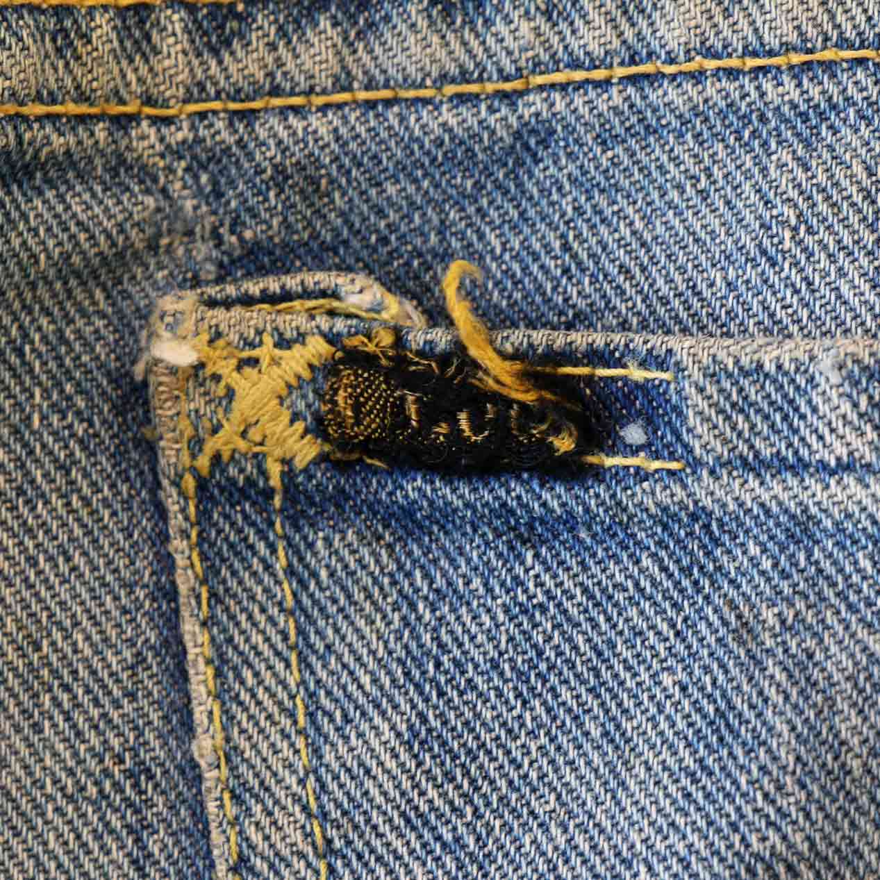 ・全体: 着用感、色褪せ、汚れ、ポケット口に一部ステッチ切れ
