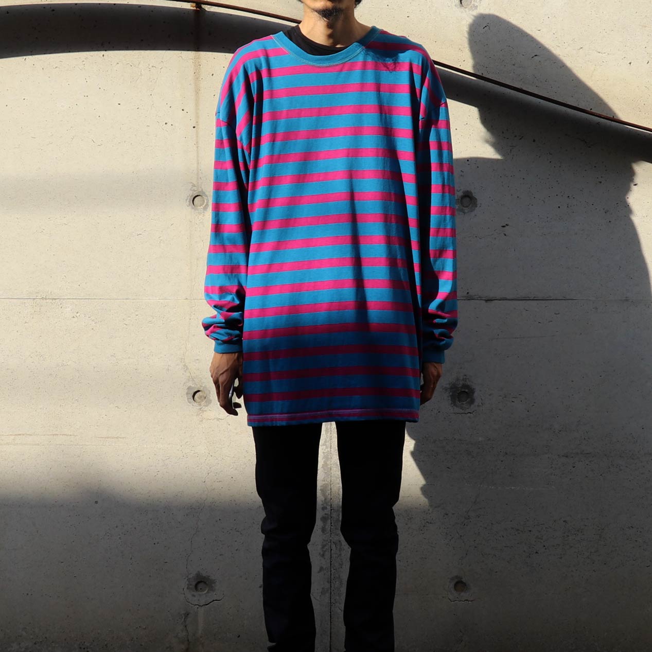 MODEL : MERVYNS CHEETAH ブルーグリーン×ピンク ボーダーTシャツ