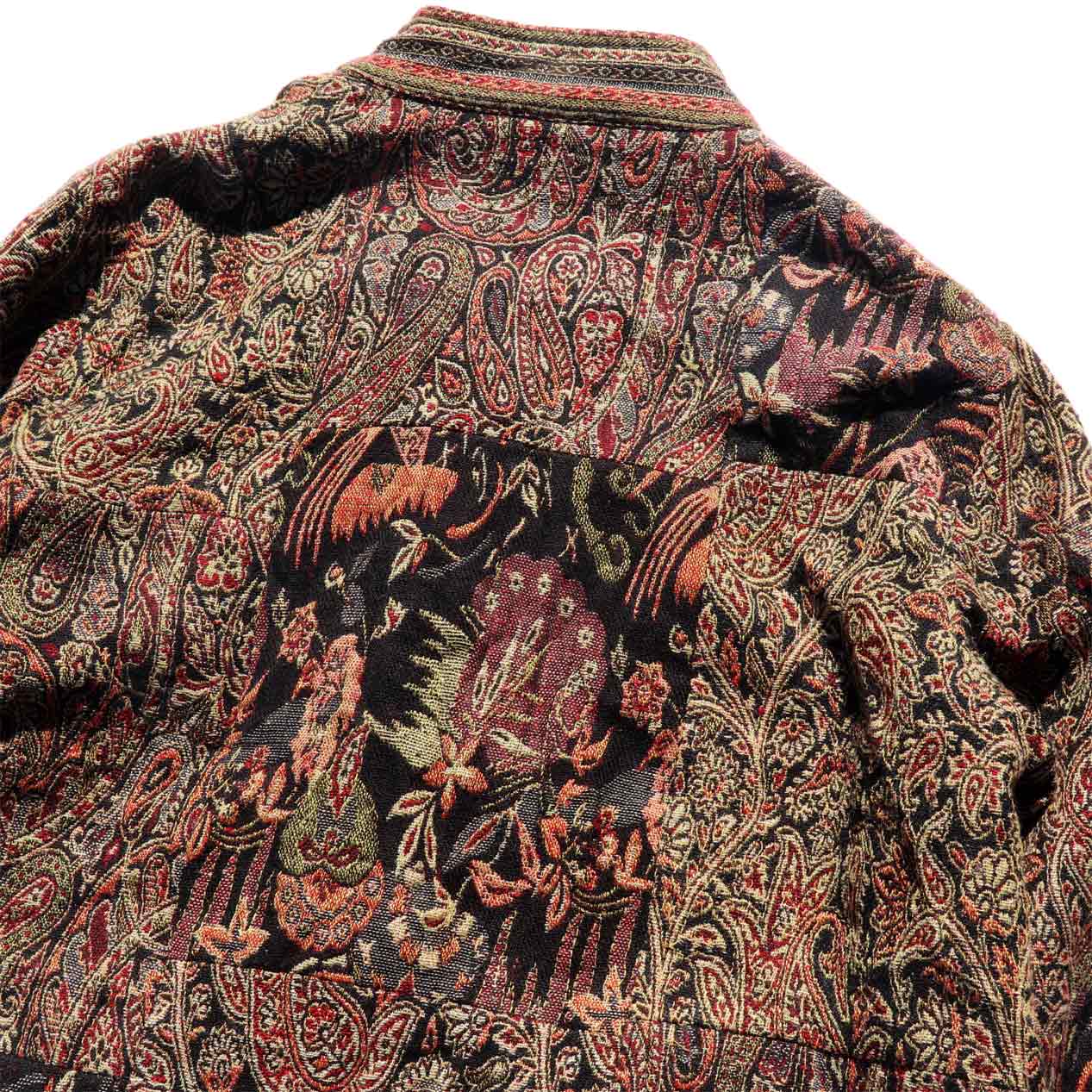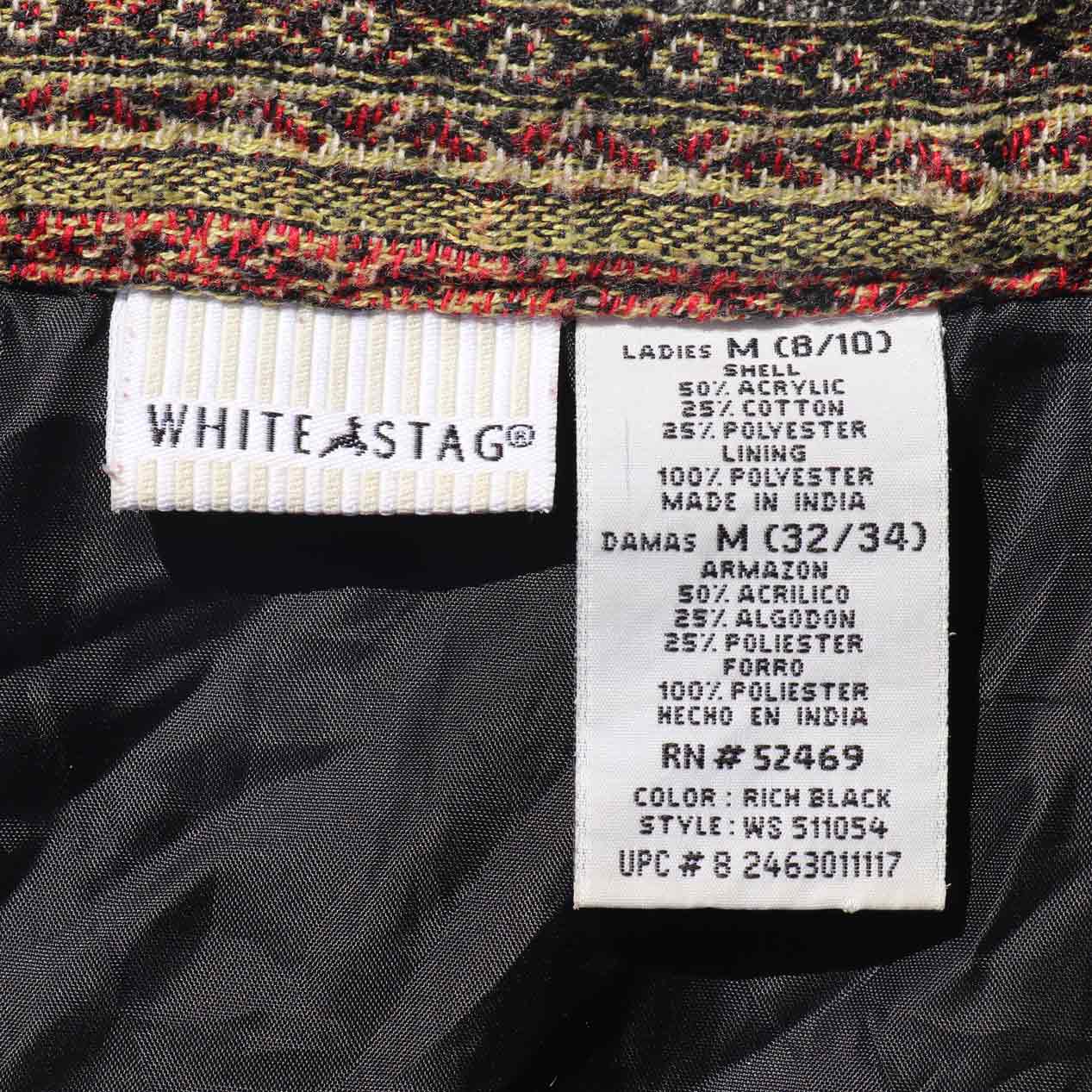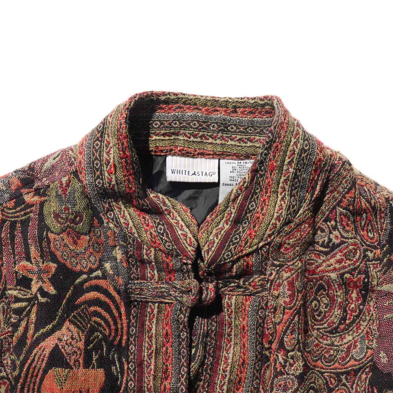 MODEL : WHITE STAG パッチワーク チャイナジャケット MANUFACTURE : Made In India AGE : 90's SIZE : Ladies M COLOR : ブラウン系 MATERIAL : アクリル 50% ポリエステル 25% コットン 25% COMMENT : 90年代、ホワイトスタッグのチャイナジャケットです。