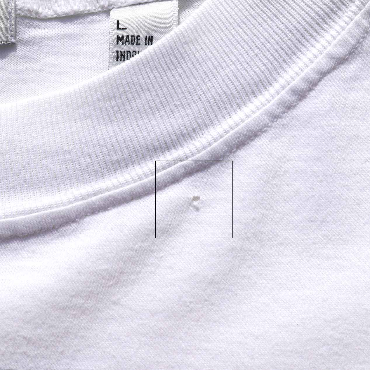 ・フロント : 肩に薄い日焼け、襟下付近にピンホール