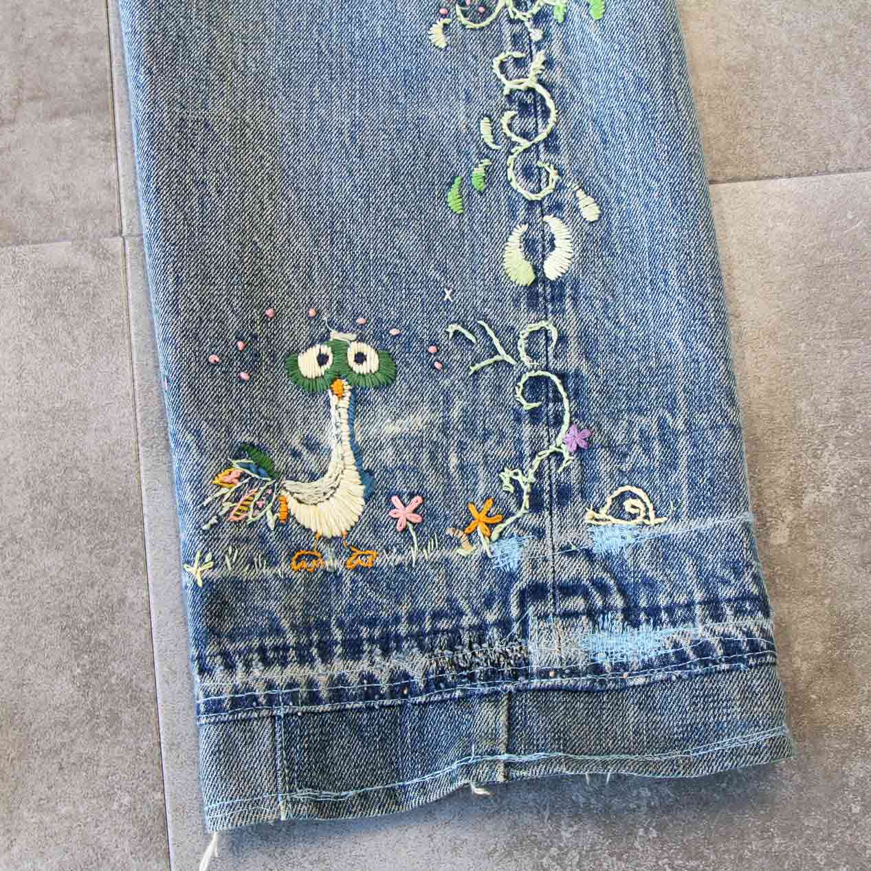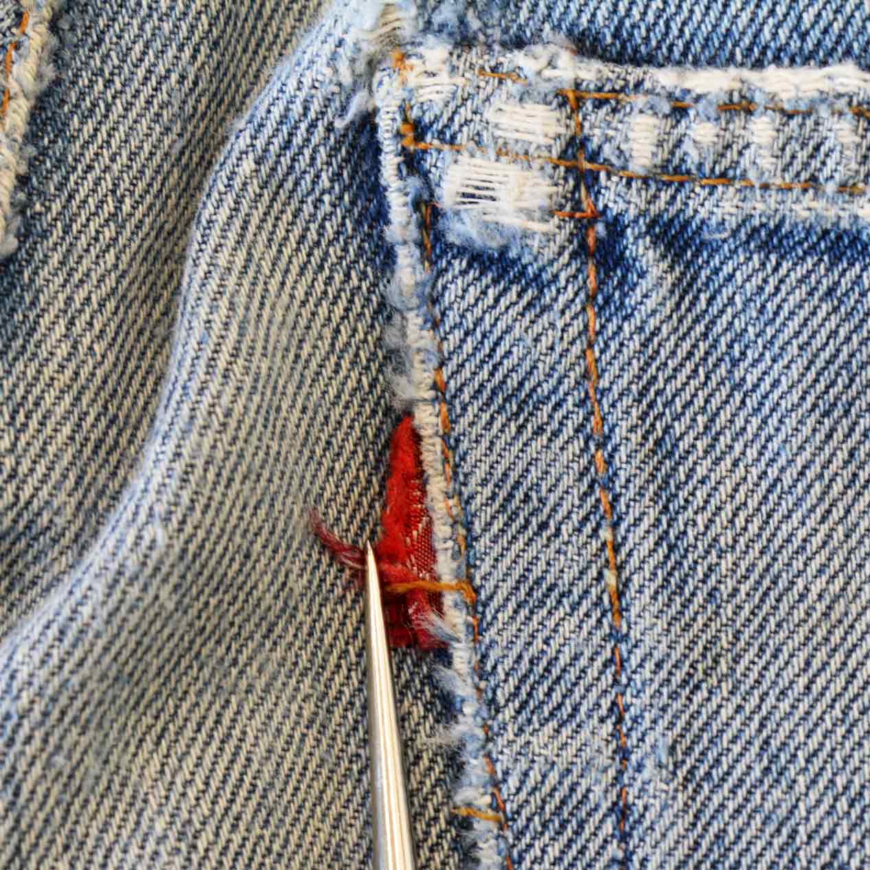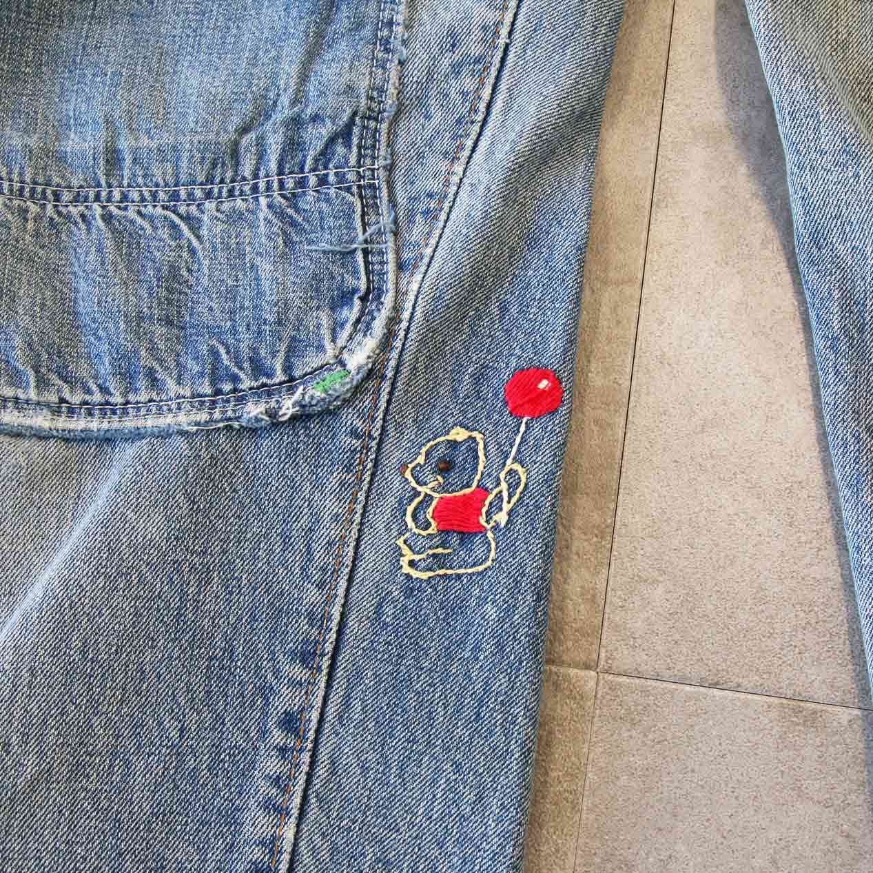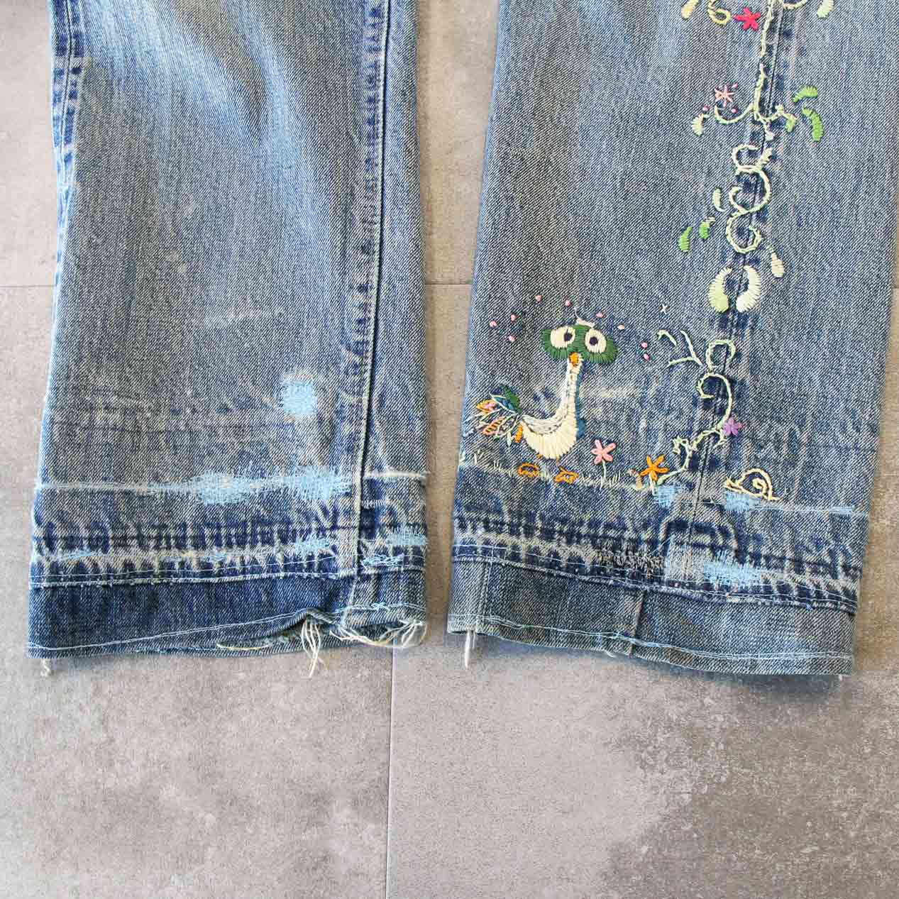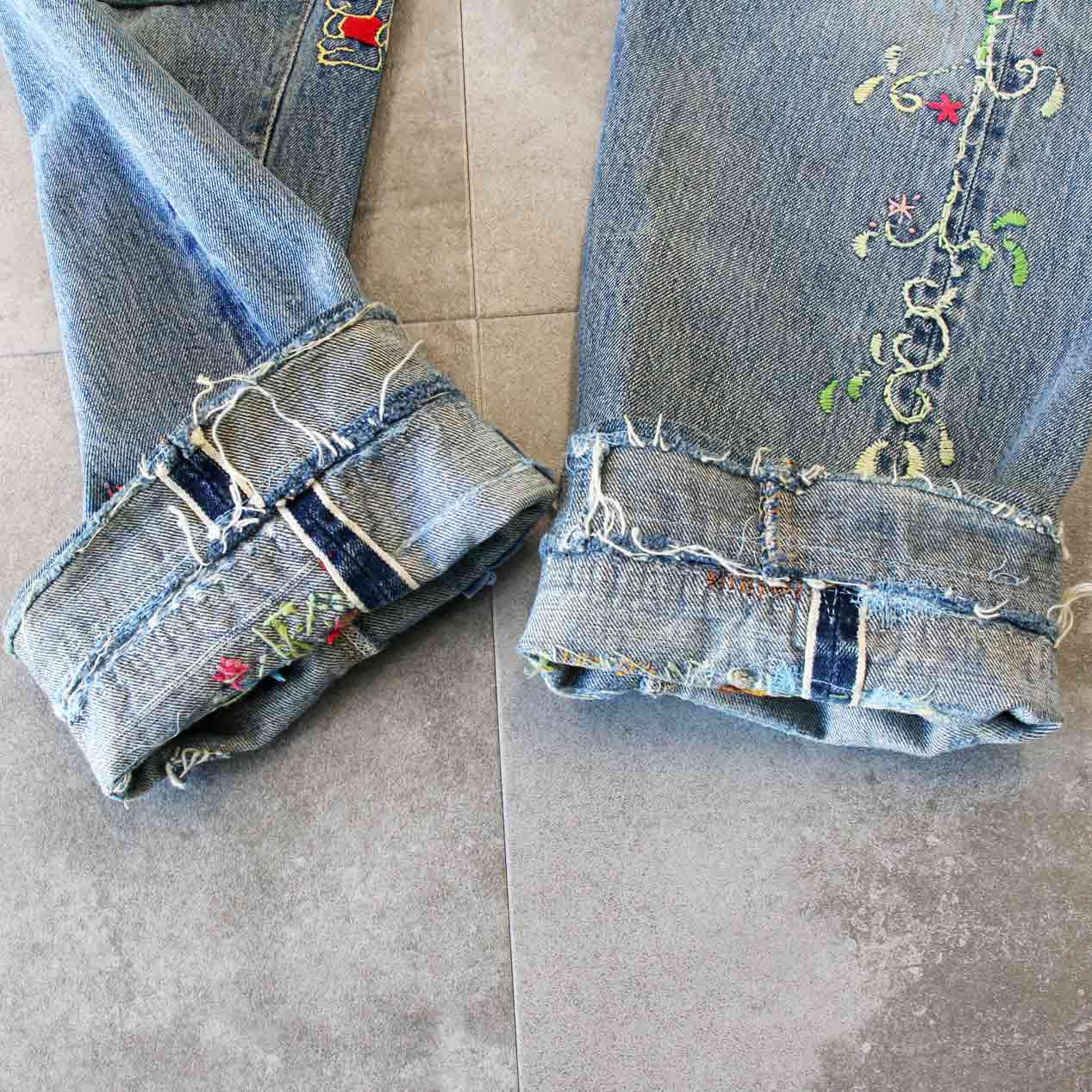 MODEL: LEVI’S 505 BIG-E Embroidered & Repaired Denim Pants With Red Line