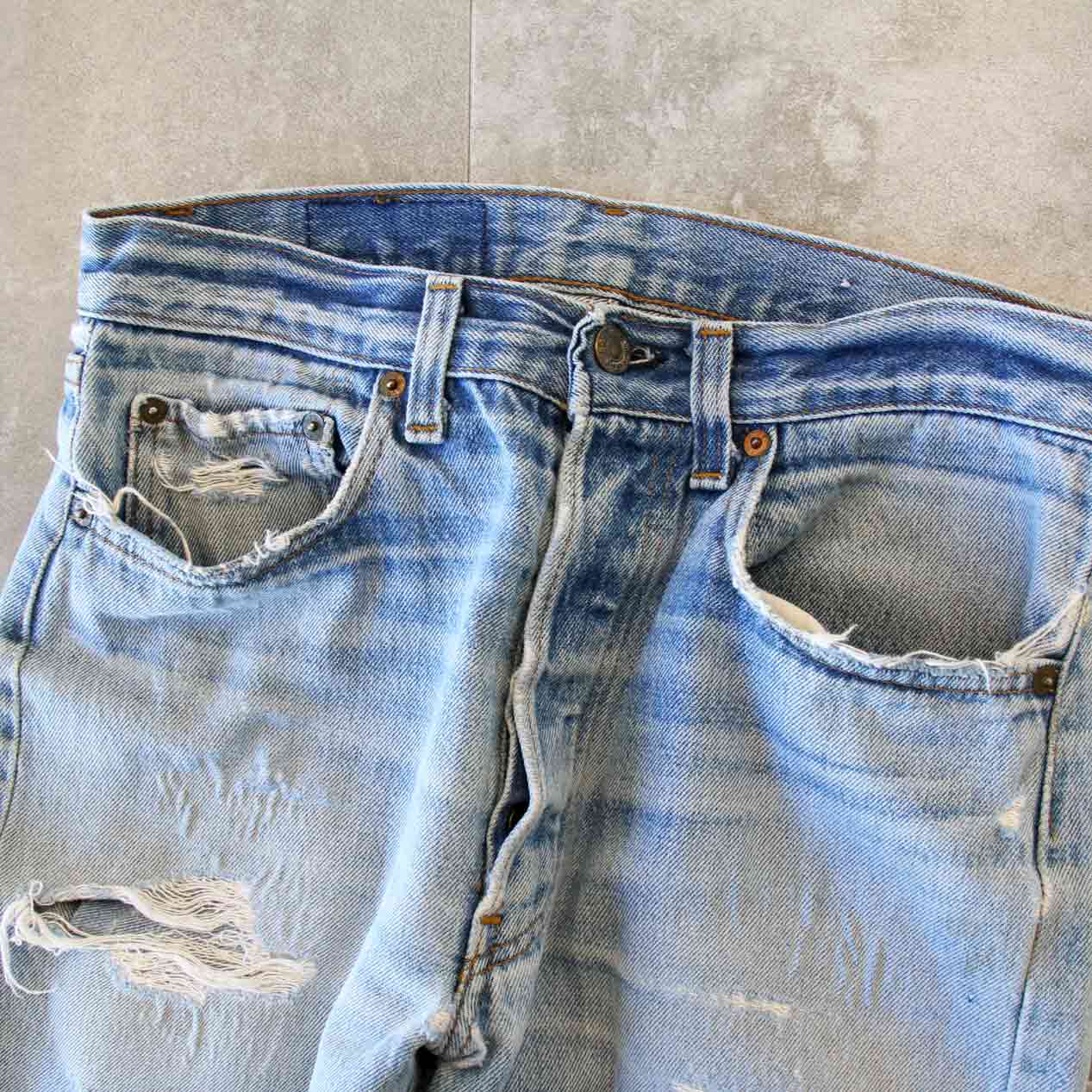 80’s LEVI’S 501 Damaged & Repaired Denim Pants Made In U.S.A. [W32]