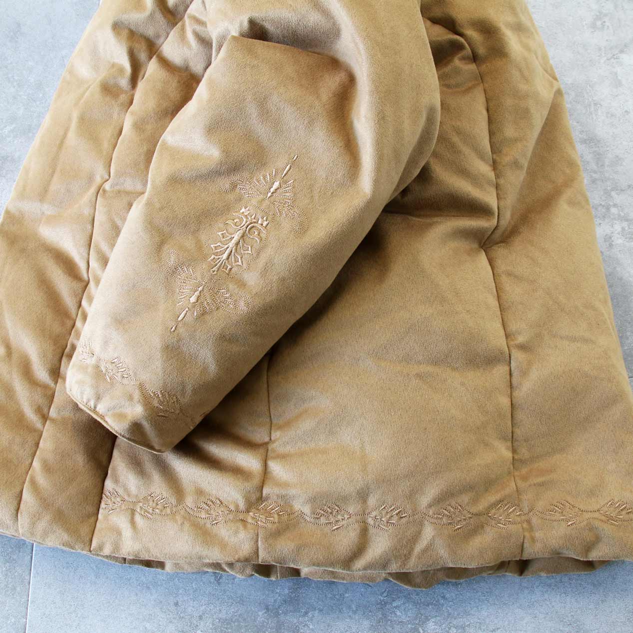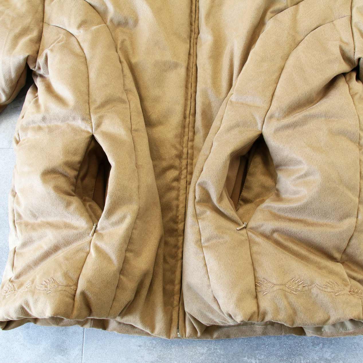 MODEL: CABELA’S Embroidered Faux Suede Down Jacket