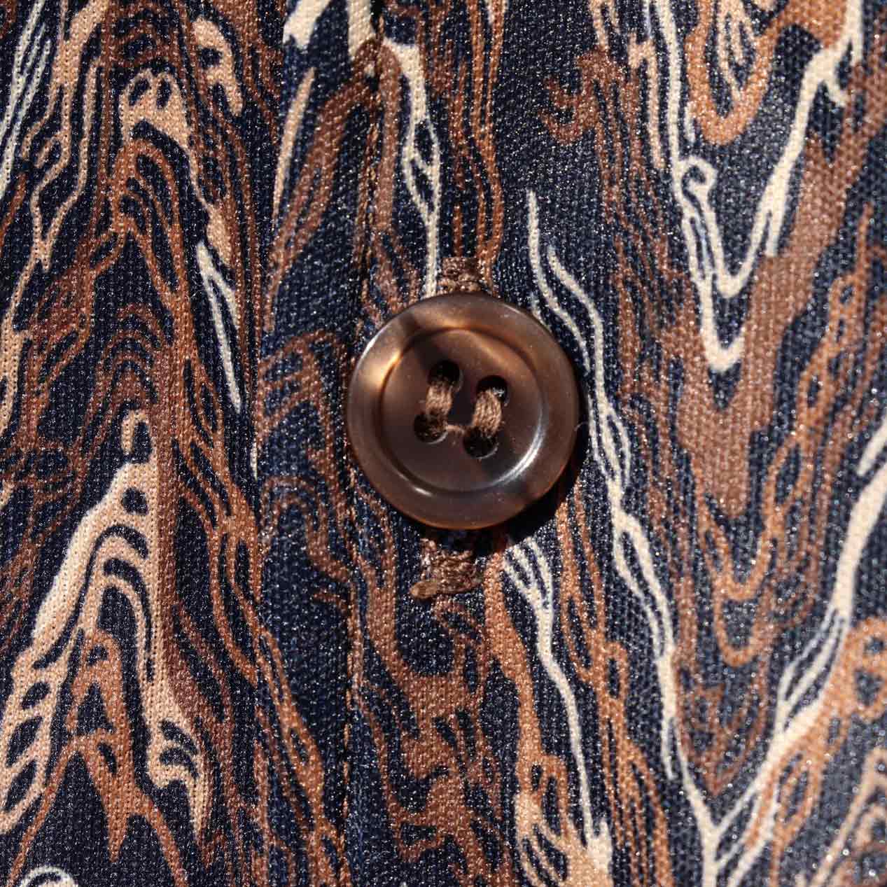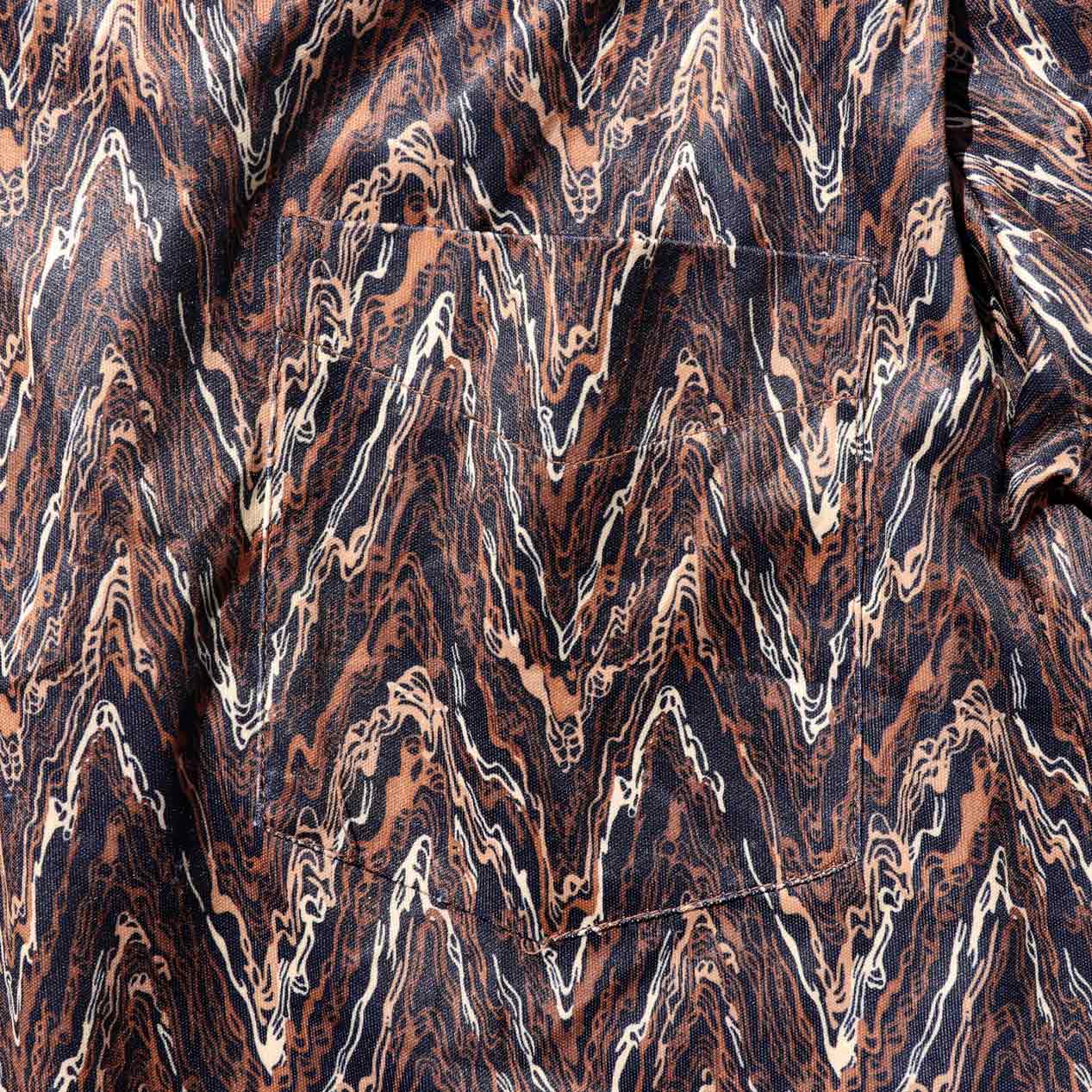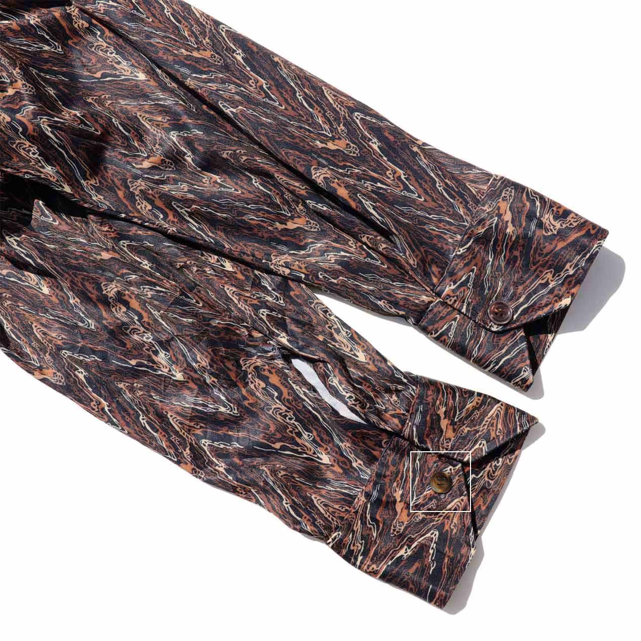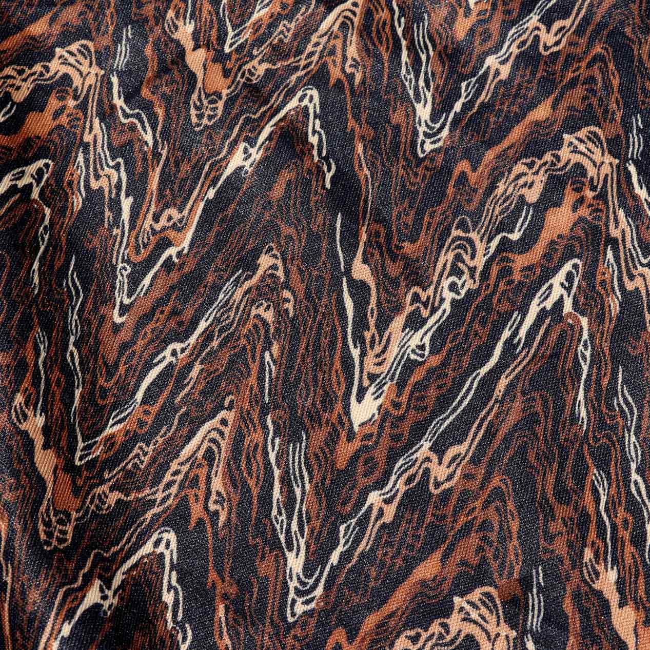 ブラックベースにブラウン系の総柄デザイン。