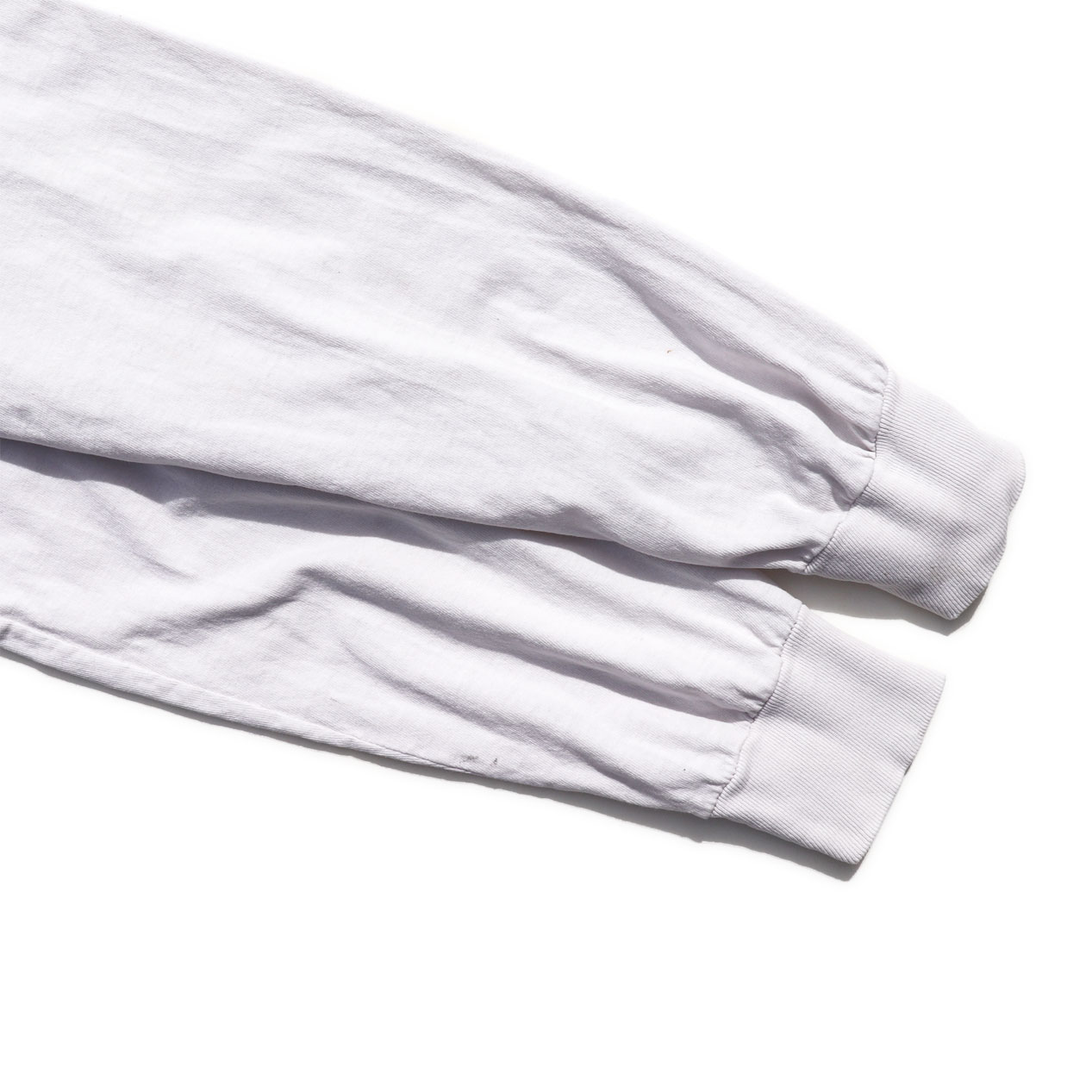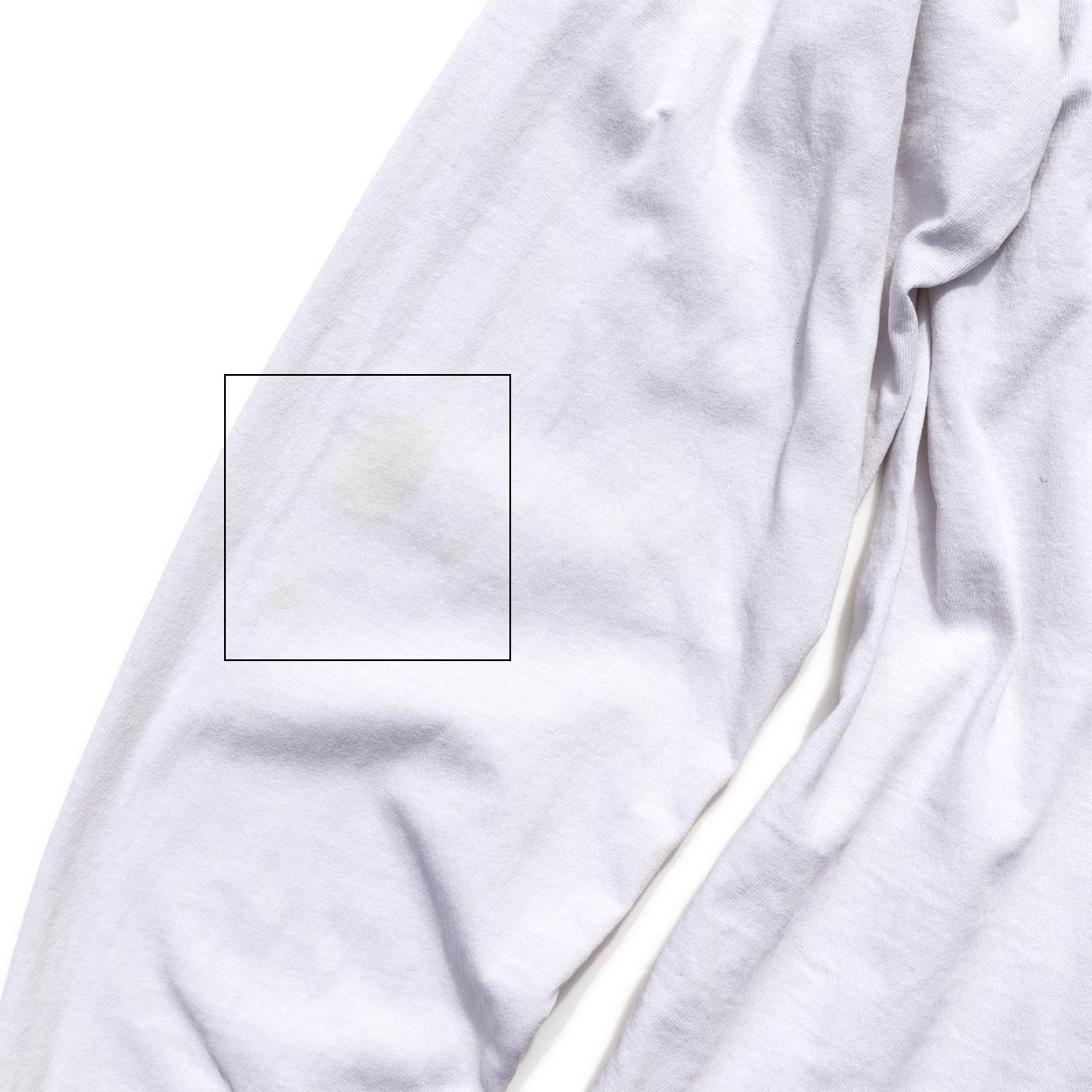 裾の縫製はシングルステッチ、袖先はリブ仕様です。