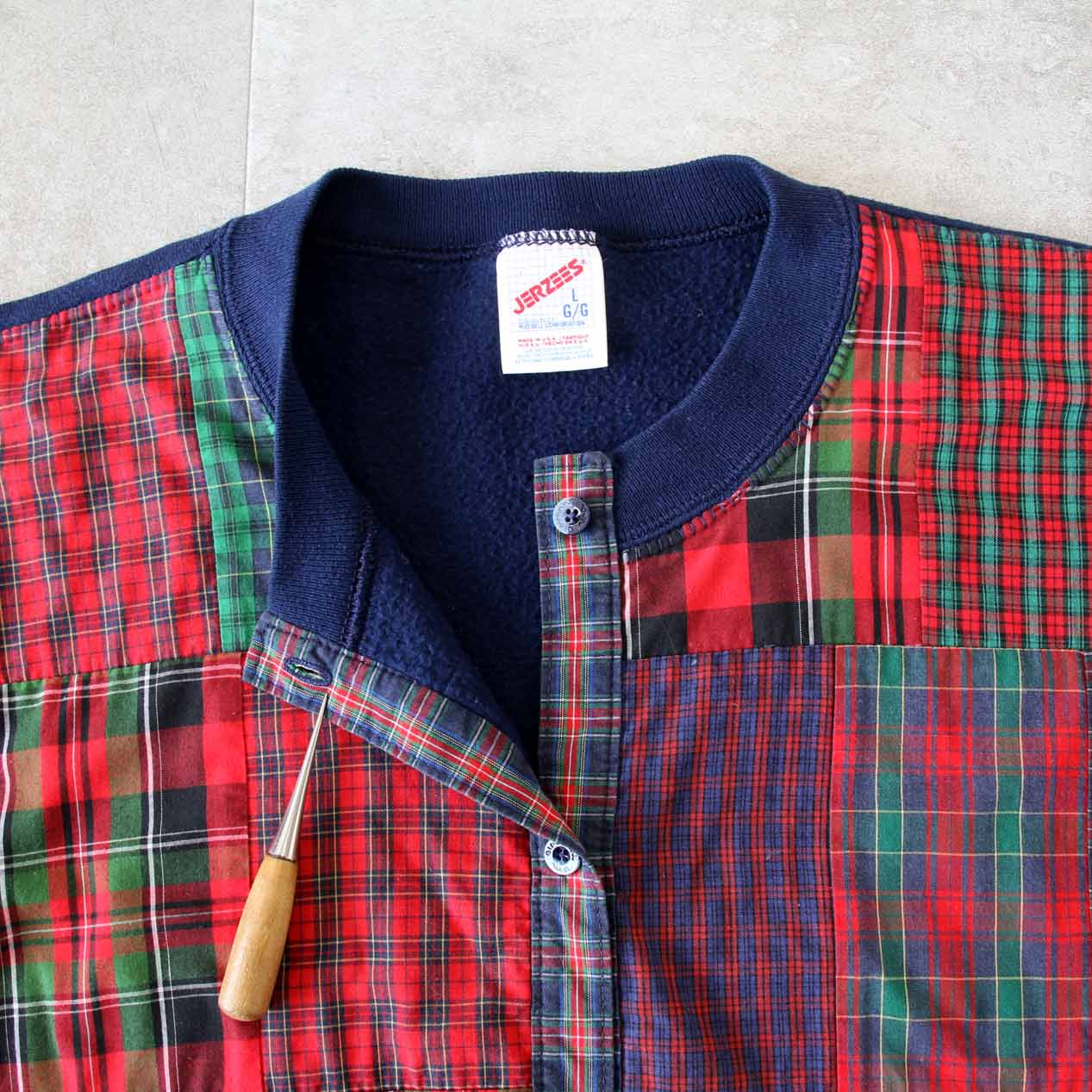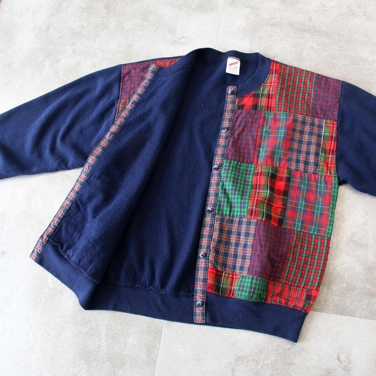 ・90’s JERZEES Patchwork Remade Sweat Cardigan Made In U.S.A. [L]